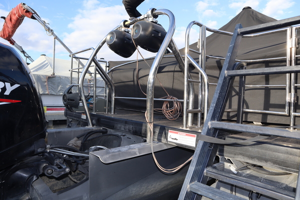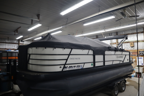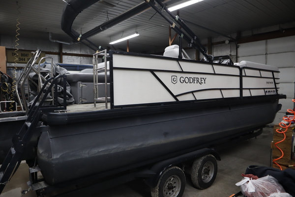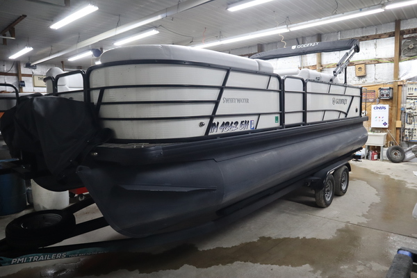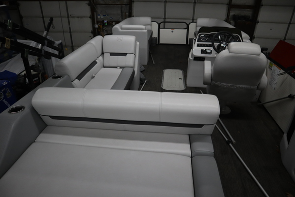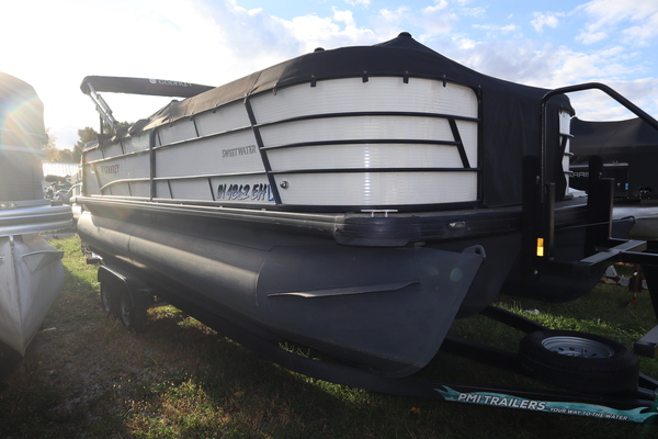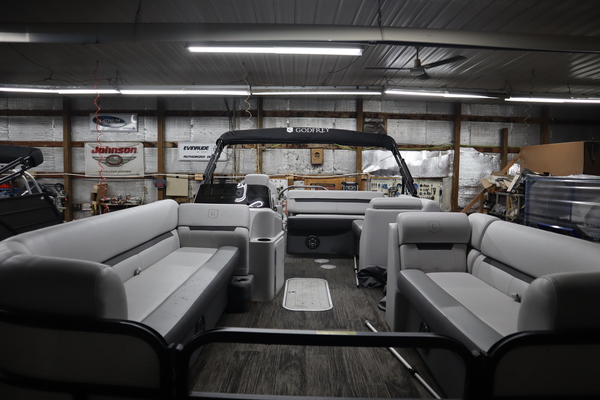 Price Includes a Mercury 150L, Stainless Steel Prop, 22' Tandem Axle Trailer w/ Brakes, GTP 27" Center Tube Package (OB): Two 25" outer tubes, 27" center tube; Under deck skin, Full; Inside Skirting; Lifting strakes; 45 gal fuel tank; Mult Function GPS Gauges; heavy Duty Channels, Midnight Package: Black Skirting w/ Bow Extension, Black Rub Rail, Black Rails, Black Canopy Frame, Black Corner Caps, Black Ladder, Hydraulic Steering, In-Floor Storage, LED Docking Lights, RGB underdeck lighting, Fusion stereo w/ 4 speakers, Lowrance Hook2-4X Fish Finder, Stainless Barrie w/ Gate, Factory snap Mooring Cover, Bimini top w/ Boot, Lakeport Plank Flooring, Battery & Extra set of Seat Covers