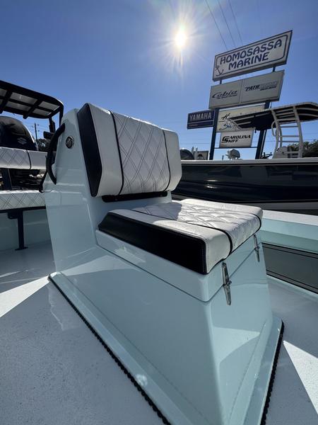 -Carolina Flare Bow: Unlike many flat-bottom skiffs, the Vengeance features a signature bow flare that deflects spray downward, keeping you and your passengers bone-dry during those morning runs across the bay.