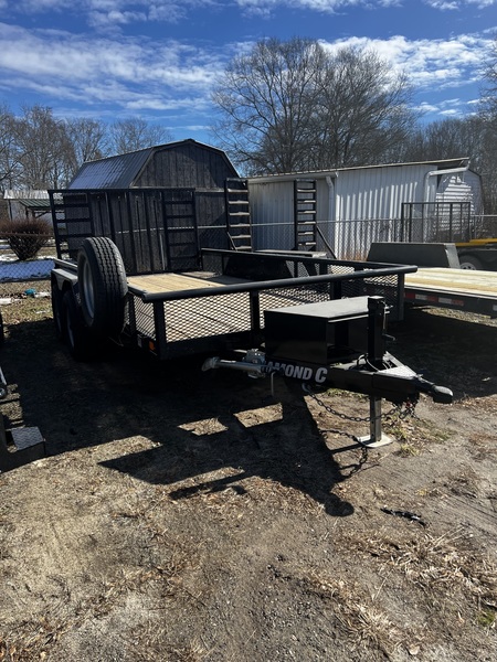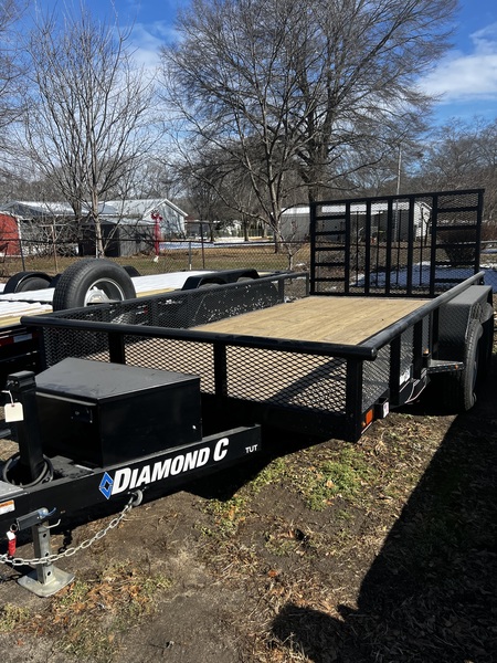 2-5200lb brake axles, pipe top rail, x-metal sides, tractor ramp gate, storage box, black