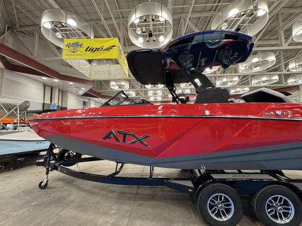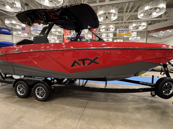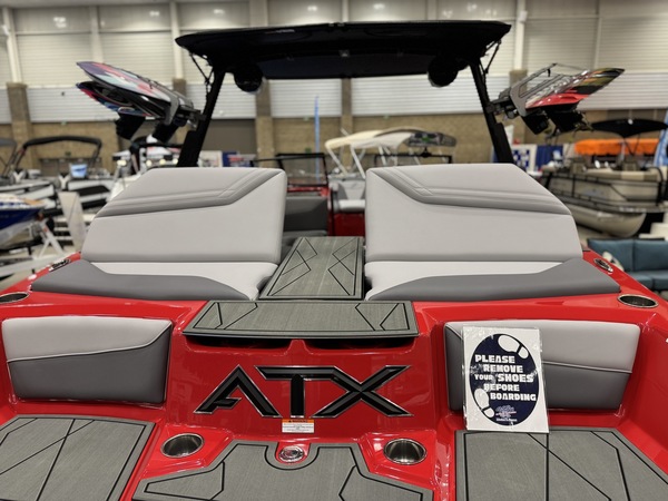 The completely redesigned hull throws impressive wakesurf waves, dependable wakeboarding wakes, and handles rough water better than you'd expect. Seriously, the rough water performance will surprise you in the best way. Whatever your crew wants to do on the water, the ATX 22 Type-S handles it without breaking your budget. Engine Type: V8 Engine Horsepower: 350 bhp; 261.2 kW Displacement: 376 cu. in. (6161.6 cc) Cylinders: 8 Length Overall: 287 in. (7300 mm) Beam: 102 in. (2.6 m) Draft: 29 Drive Down; 736.6 Drive Down Dry Weight: 5500 lb. (2494.8 kg.) Max Person Capacity: 15 Fuel Capacity: 57 gal. (215.8 L) Max Carry Load: 2150 lb. (975.2 kg.)