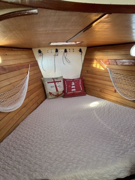 Natural light provided by two hull ports forward, four fixed ports in cabin sides and opening hatches in foredeck and cabin top which also provide natural ventilation.