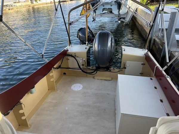 Bow roller incorporated in the heavy-duty stainless-steel anchor bracket. The cockpit well-deck is self-draining through transom scuppers.