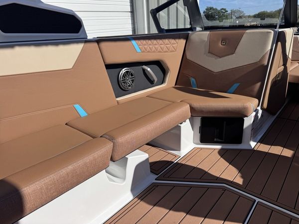 The bow of the Super Air Nautique GS24 prioritizes comfort and convenience. Offering a wide, spacious layout, the bow includes integrated cupholders to keep drinks secure and easily within reach as well as under seat storage for gear or personal items.
