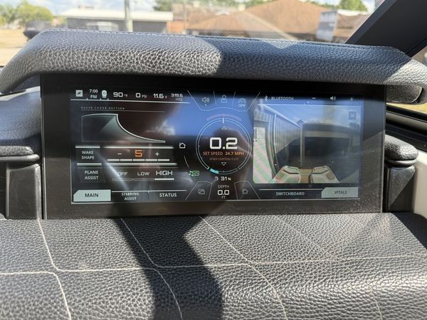 KEEPING EVERYTHING THEDRIVER NEEDS WITHIN REACHThe all-new G23 takes on the asymmetrical design that Nautique has been on the forefront of and taken it one step further. Clear visibility of the water and the LINC Panoray touchscreen are evident, while keeping everything the driver needs within reach. A phone pocket doubles as a place to keep your drain plug when your boat is out of the water, and a large open dash area is the ideal place for hats and other accessories.