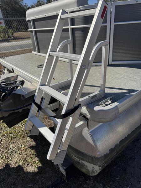 Sturdy Boarding Ladder: Heavy-duty, stainless steel stern-mounted ladder for easy re-entry after a swim.