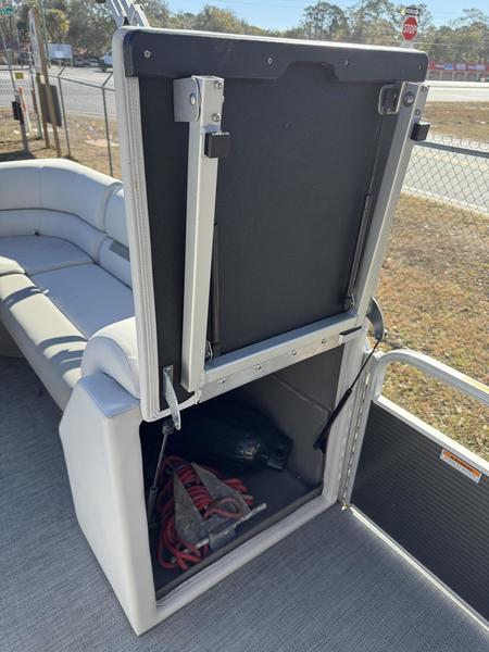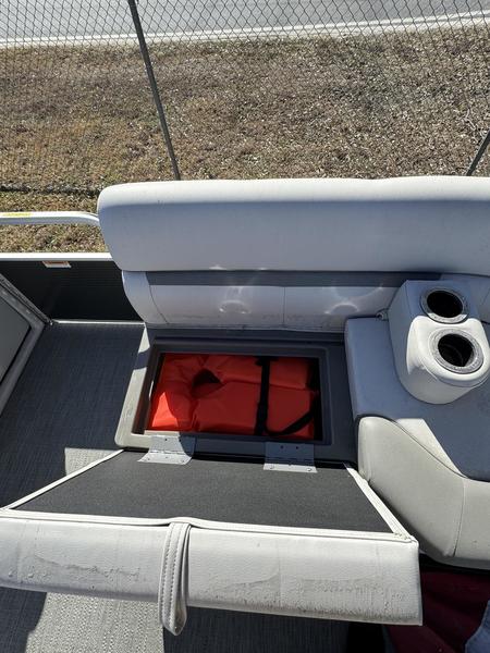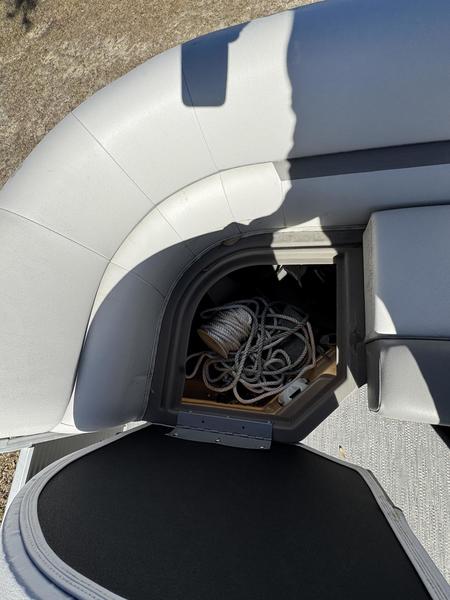 Sun Lounge & Storage: Large aft sun pad with massive under-seat storage compartments for life jackets, coolers, and gear.