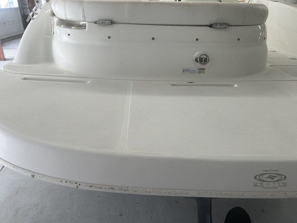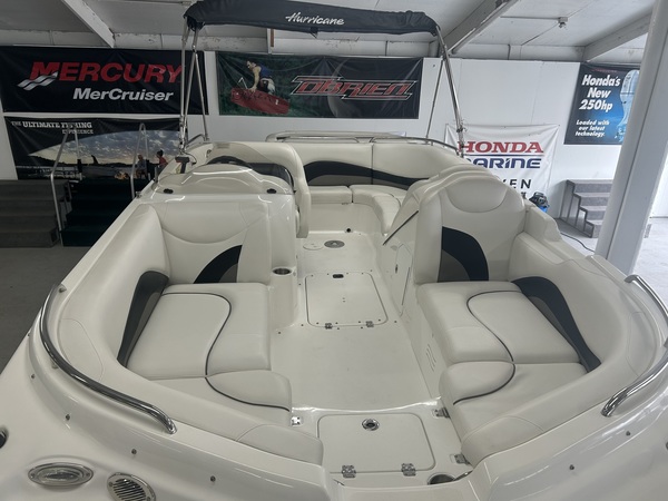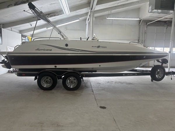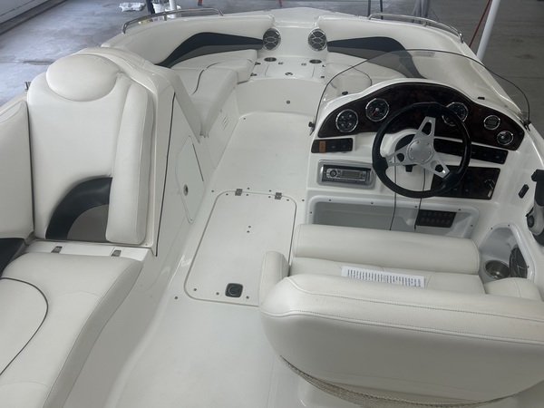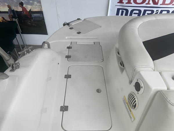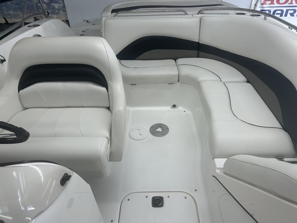 Clean deck boat with room for 10 occupants! The boat is powered by a Mercruiser 4.3 MPI (220 HP) engine with only 106.5 hours on it! Engine is covered by a 60-day 50/50 parts and labor warranty that would begin on May 1, 2026. The features and accessories on this deck boat include front anchor locker, front fold up ladder, snap-in carpet, in-floor storage, Bimini top w/boot, full black mooring cover, docking lights, full swim platform w/rear fold up boarding ladder, ski tow ring, wood grain dash accents, low profile windscreen, tilt steering, extra-large captain's chair w/bolster, dual battery switch, stainless-steel rubrail, RPM/MPH, fuel, oil, volt, temp, trim, and digital depth finder, Marine Drive MP3 WMA stereo with 4 speakers, under seat storage, interior lights, navigational lights, horn, fire extinguisher, stainless-steel cupholders cleats, and grab bars. Max HP: 270 hp (201 kW) Length Overall: 20 ft. 1 in. (6.13 m) Beam: 102 in. (2.59 m) Draft: 14 in. (356 mm) Dry Weight: 3741 lb. (1698 kg) Max Person Capacity: 10 persons Fuel Capacity: 49 gal. (186 L)
