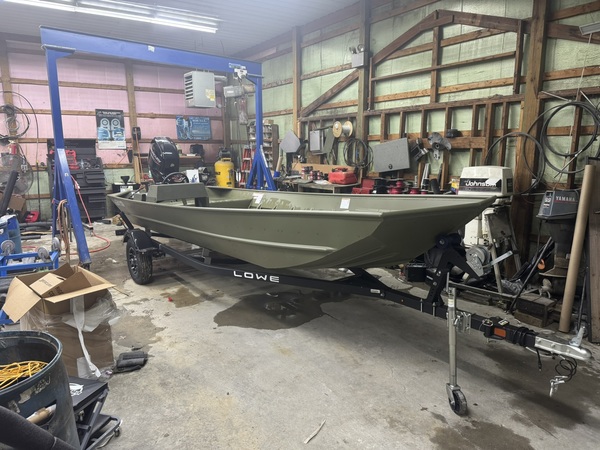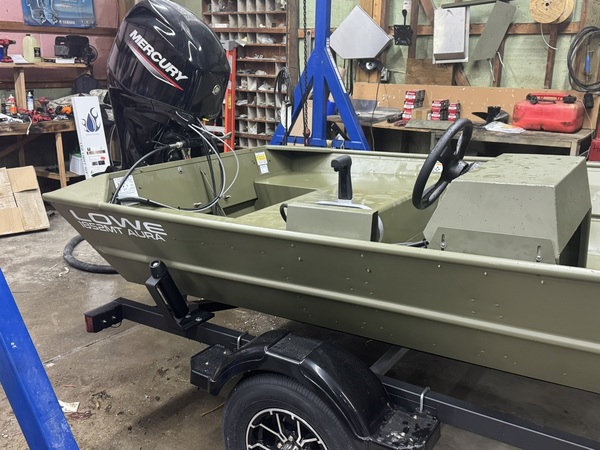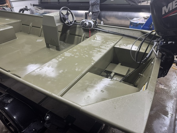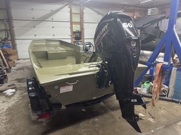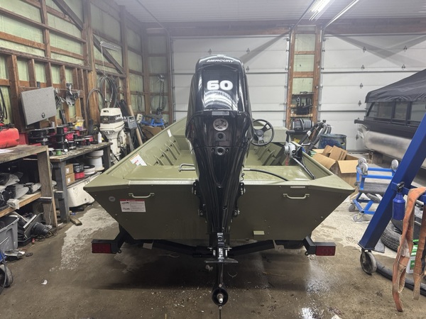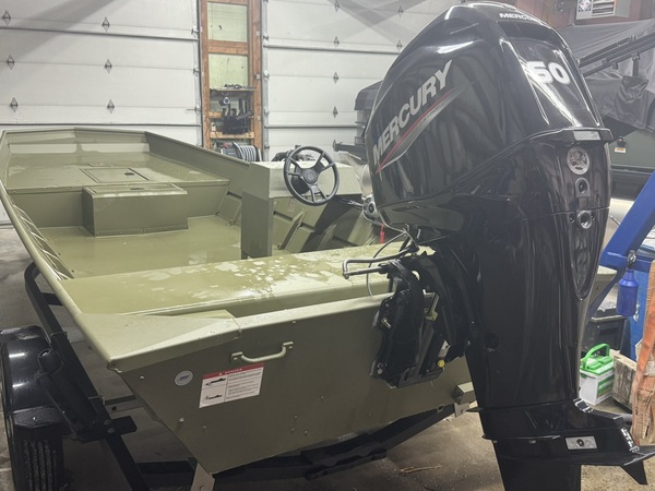 Price Includes a 60ELPT EFI (Built in 2022), 2024 Karavan Trailer, Factory Jon Boat Conosle, Battery, 6 Gal Gas Tank, Tie Downs, Aluminum Prop