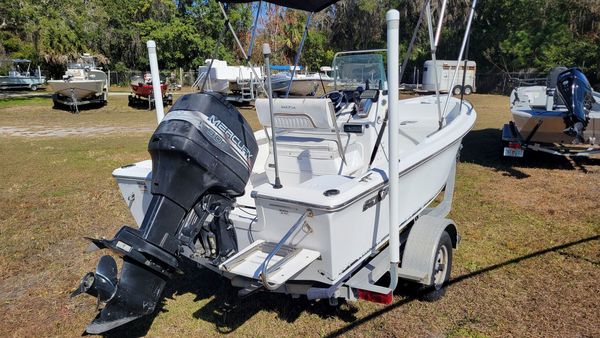 2008 SeaFox 172CC, Mercury 90hp 2-stroke, & aluminum trailer. This boat comes with the following features: bimini top, flip/flop cooler seat, compass console grab rail, swim platform with fold down ladder, anchor storage, gunnel rod holders, large bow storage, and a 5 persons capacity. The engine will be serviced before going to the new owner. Please give us a call today for more information 386-328-0767