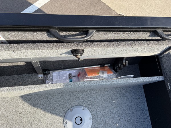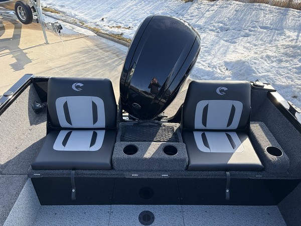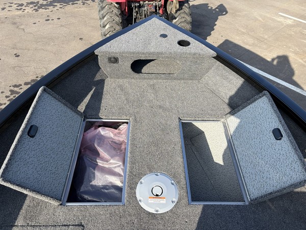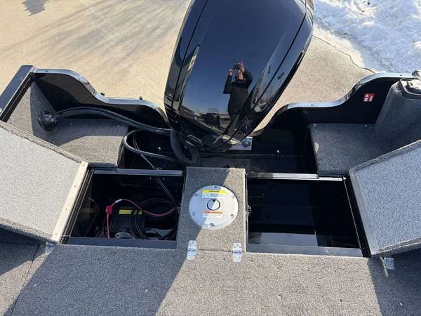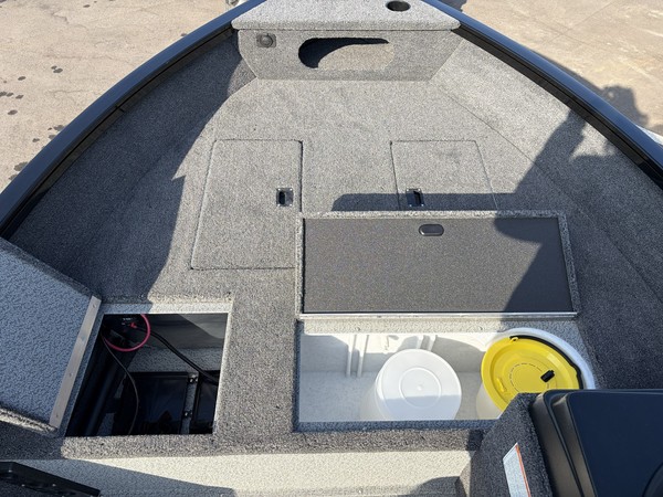 The bow features two storage compartments, a 24-V battery compartment and a 17-gal aerated livewell with bait bucket.