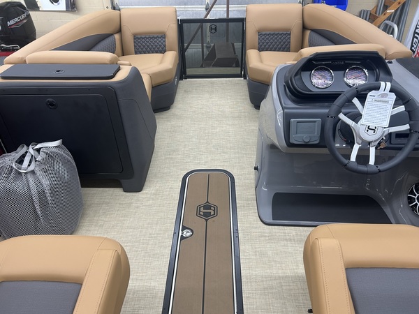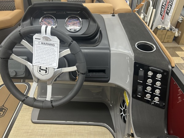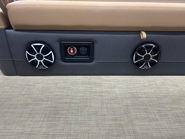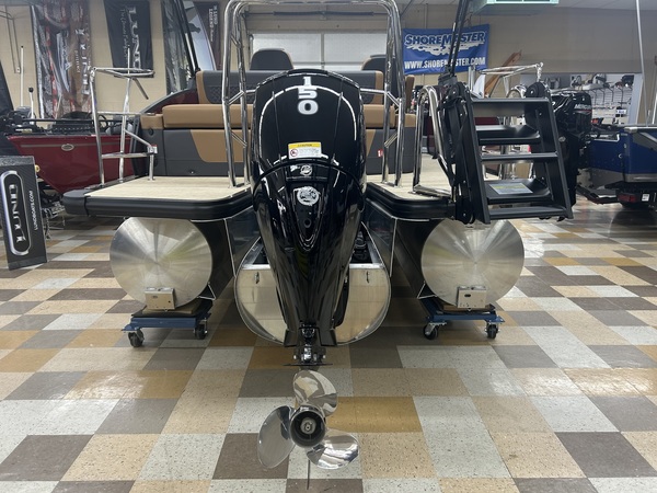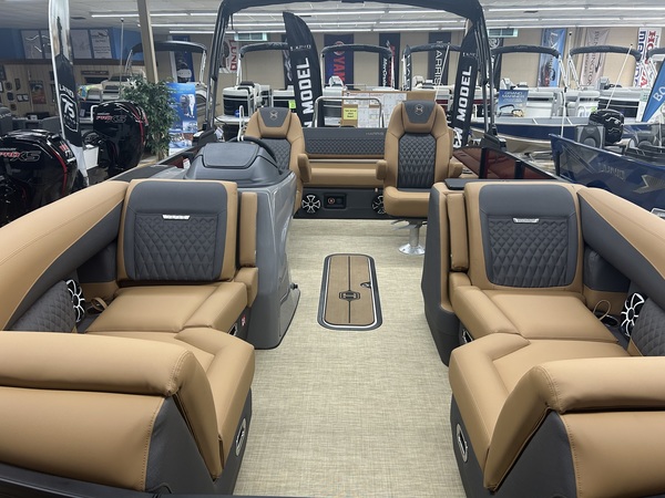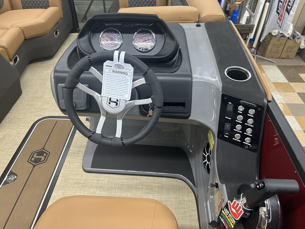 Beautiful tri-toon pontoon with 150 HP 4 Stroke EFI motor with a 7-year Mercury motor if purchased by March 31, 2026. The features and accessories on this boat include 2 - 25" outside pontoons with a 27" center tube with strake and keel, extended rear platform, ski tow bar, underdeck wiring protection system, Ruby Red Metallic primary fencing, SLDH floorplan (Swingback Lounger w/Dual Helm Seats), Black Edition powder coat railings, Full Seagrass Desert Beige vinyl flooring, Luxury Chestnut Brown furniture with composite seat bases, Ultralux dual helm seats, standard Seastar hydraulic steering with tilt, Contour 10' Power Bimini top with boot, Convenience Package with 8.8" bumpers, In-Floor storage, safety gates, safety rail, See-through bow gate, total lighting package (interior & exterior), Woodgrain Luxury Sport table, port bow chaise end storage, locking glovebox, wheelchair friendly port side gate, stainless steel pull-up cleats, Lillipad ladder, Wet Sounds Stereo with 6 speakers, 12V DC receptacle, USB/USB-C Ports, Analog gauges (Fuel, Tach/Hour, & Trim), tilt steering, gate floor stops, cupholders, and full E-Z Clip Mooring cover. Engine HP: 60 bhp; 45 kW Engine Displacement: 60.8 cu. in. (995 cc) Deck Length: 292 in. (7400 mm) Deck Width: 102 in. (2.6 m) Weight: 2816 lb. (1277.3 kg.) Capacity: 1792 lb. (812.9 kg.) Number of Tubes: 2 Fuel Capacity: 29 gal. (109.8 L)