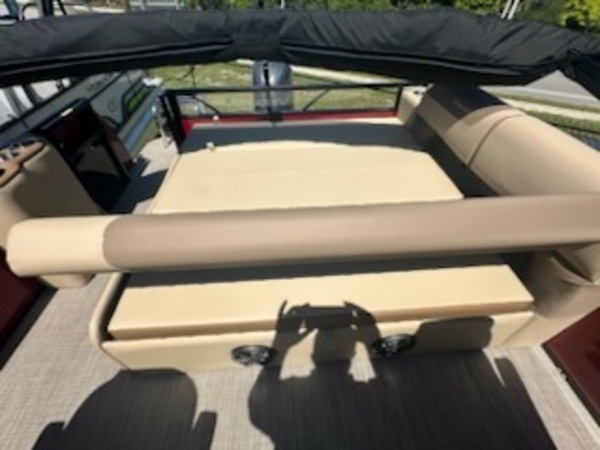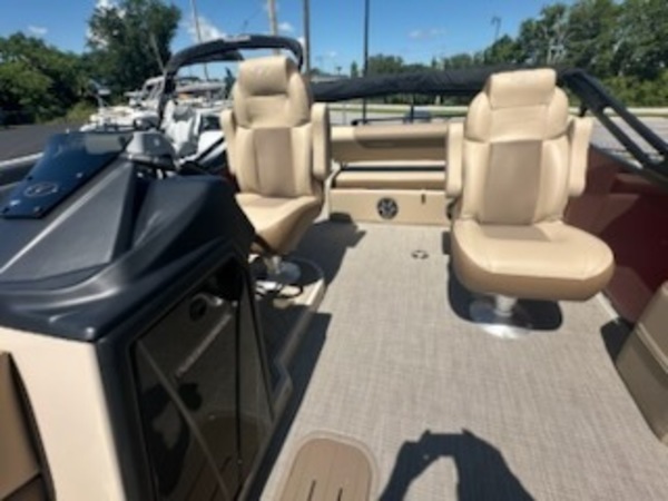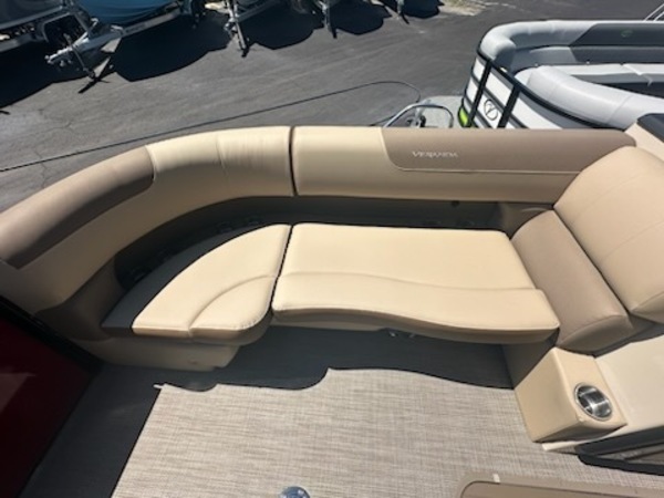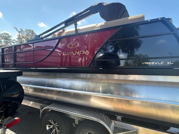 Price includes Boat, Motor, and Trailer. No Additional Dealer Fee. Experience unparalleled luxury and performance with the 2025 Veranda VLC22, featuring a striking Black Winberry Metallic finish and powered by a robust Yamaha 200 HP outboard engine. Designed for discerning boaters, this pontoon combines elegance with cutting-edge technology to deliver an exceptional on-water experience. Key FeaturesEngine: Yamaha 200 HP outboard engine, renowned for its reliability and power, ensuring exhilarating performance and smooth cruising.Exterior Finish: Sleek Black Winberry Metallic panels paired with black powder-coated rails create a sophisticated and modern aesthetic.Flooring: Tan woven flooring offers a stylish and durable surface, enhancing comfort and ease of maintenance.Trim Package: The XL trim package elevates the pontoon's luxury with premium upholstery, upgraded dash, and enhanced lighting features.Hull Design: Equipped with side keels, the VLC22 ensures improved handling and stability, providing a smoother ride in various water conditions.️ Comfort & EntertainmentSeating: Versa Lounge seating system with 3-position aft lounge and port captain’s chair, offering versatile configurations for relaxation and socializing.Audio System: Bluetooth-enabled stereo system with marine-grade speakers, delivering high-quality sound for your onboard entertainment.Lighting: Integrated LED lighting accents, including underdeck and underwater lights, create an inviting ambiance during evening cruises.Storage: Ample storage compartments throughout the pontoon, including in-floor storage, ensuring all your gear is neatly stowed.⚙️ Performance & HandlingHull Construction: Patented all-aluminum, all-welded interlocking deck system provides durability and reduces maintenance.Pontoon Design: 27" triple-toon configuration enhances buoyancy and stability, accommodating the high horsepower engine for optimal performance.Steering: Hydraulic tilt steering offers precise control and a comfortable driving experience.Additional Features: Includes a stainless steel ski tow bar and swim boarding ladder, expanding recreational possibilities.The 2025 Veranda VLC22 with Yamaha 200 HP outboard is the epitome of luxury and performance, offering a versatile and stylish platform for all your boating adventures. Whether you're cruising, entertaining, or engaging in water sports, this pontoon delivers an exceptional experience.407-688-3030