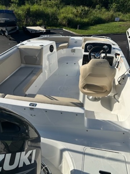 2025 Hurricane 188 SunDeck Sport OB SS with Suzuki 150 – Your Ultimate Adventure Awaits! Experience the perfect blend of performance, comfort, and style with the 2025 Hurricane 188 SunDeck Sport OB SS, powered by the reliable Suzuki DF150A outboard motor. Designed for those who demand excellence on the water, this deck boat is equipped with premium features to enhance every outing⚓ Key Features & SpecificationsHurricane 188 SunDeck Sport OB SS:Length: 18' 10"Beam: 8' 5"Passenger Capacity: Up to 10Dry Weight: Approximately 2,400 lbsFuel Capacity: 36 gallonsMax Horsepower: 150 HPHull Material: FiberglassSteering: Hydraulic SeaStar with tilt wheelConsole Color: WhitePhone Holder: Wireless ChargingSki Tow Bar: FixedBase Vinyl: Select TanHelm Seat: Single bucket with bolsterBow Table: IncludedSuzuki DF150A Outboard Motor:Engine Type: DOHC 16-Valve Inline 4Displacement: 2.9L (174.9 cu in)Maximum Output: 150 HPOperating Range: 5,000–6,000 RPMFuel Delivery: Multi-Point Sequential Electronic Fuel InjectionSteering: RemoteTrim & Tilt: Power Trim and TiltWeight: Approximately 518–531 lbsFinish: Suzuki Anti-Corrosion FinishAdditional Features: Dual freshwater flush ports, Suzuki Precision Control️ Preferred Option GroupBoat Cover: Protects your investment when not in useStern Wash Down: Keeps your boat clean and ready for the next adventureDual Battery Switch: Ensures reliable power managementStainless Steel Upgrade Package II: Adds durability and a premium finishDon't miss out on the opportunity to own this exceptional deck boat.Give us a call today! 407-688-3030