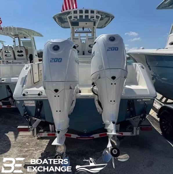 Gelcoat Hardtop, 2-Tone Underside (Bayside Blue) upgradeYamaha Twin 200XSA2 (White) 400HPHelm Master, EX DES Twin Engine w/ISO ChargerDigital Electric SteeringGEM Stainless SteelTrim Tab IndicatorHelm Seat Deluxe Cooler W/SlideCushion Color-2-Tone Platinum & WhiteBow Cushion Pkg w/FF BackrestHardtop with Integrated Frame and Glass Windshield, White Powder CoatingElectric Head with Macerator (with Port Window)Speakers, JL Audio for Hard Top, 4 WhiteStereo, JL Audio with Amp, 2 Sub Woofers, & Speakers, 6 WhiteBoarding LadderRod Rack for Leaning PostFish Box Pump-Out with Macerator (2)Windlass Deluxe-Chain, Rope, S/S Anchor & Stem Chafing GuardLine Upgrade for Windlass System-300FtHelm Seat Base or Leaning Post FRP-Pure WhiteHelm Seat Tackle Station Trim-WhiteHardtop Trim-WhiteWhite rub Rail with Stainless Steel Insert UpgradeUnderwater Lights, Blue (Set of 2)Tandem Axle Trailer with Brakes (Both Axles)Disk BrakesGuide PolesLED LightsSpare Tire with CarrierAluminum WheelsBoaters Exchange DiscountConstructionVarisSteering & Handling Steering WheelGEM Stainless SteelSteering & Handling Trim Tabs & IndicatorsTrim TabsSteering & Handling Other OptionsYamaha Fuel/Water Separator & Control Cables (w/ Engine OptionWaterproof Deutsch Electrical ConnectorsHull Color Hull Color PatternHull SolidHull Color Hull 2-TonePure WhiteHelm Seating Helm SeatingHelm Seat Std W/Tackle StationCushions Cushion ColorWhiteCushions Cushion OptionsHideaway Aft Bench SeatingCockpit BolstersConsole Seating w/ Backrest & CushionFamily Features TopsNoneFamily Features Washdown SystemsFresh Water Washdown SystemRaw Water WashdownFamily Features Comfort and ConvenienceBoarding Ladder (Covered)Forward Console Access DoorFresh Water at TransomFresh Water Sink in ConsoleBow Rail (Fully Recessed)Head Comfort Appointments (Towel Bar, Toilet Paper Holder, Mirror)Insulated Cooler in Console (57.5 qt)Side Dive, Tuna and Dockside Boarding Door (Inward Opening)USB Outlets and Cupholders ThroughoutFishing Features Advanced Angling DetailsCockpit Insulated Fish Boxes (2-46 gal)Self-Bailing CockpitCleats, Heavy Duty, Pull-up (7)Fishing Features Rod RacksSS Gunnel Rod HoldersStainless Steel Thru-Hulls w/ Seacocks Below Water LineUnder-Gunnel Rod StorageAdditional Color Accents Console InsertPure WhiteAdditional Color Accents Helm Seat Tackle Station Trim ColorWhiteAdditional Color Accents Rub RailsBlack Rub Rail with Stainless Steel InsertLights and Electric LightsCockpit Lights, Compass & Helm FootrestLights and Electric Battery & AccessoriesNo BatteriesLivewells and Pumps Available OptionsLivewell (30 gal)Over-Sized Bilge Access Door w/ Electronic Lift Assist