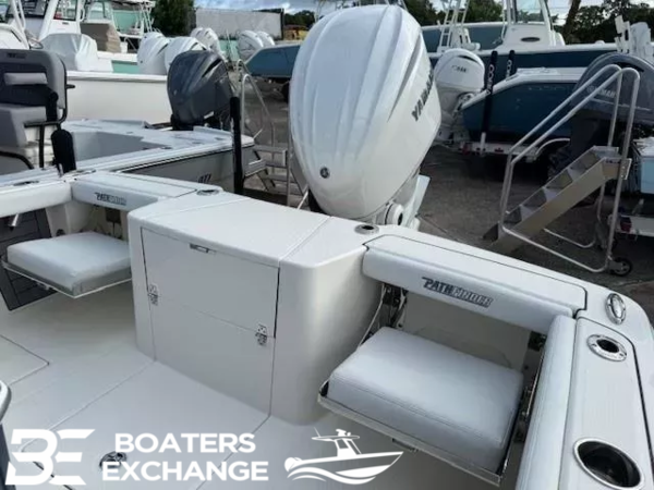 Fiberglass Cooler (Deepwater Blue) upgradeConsole Main Color (Deepwater Blue) upgradeConsole Insert Color (Deepwater Blue) upgradeHelm Seat Base or Leaning Post FRP Color (Deepwater Blue) upgradeGelcoat Hardtop, 2-Tone Underside (Deepwater Blue) upgradeYamaha F300XSB2 300HPHelm Master EX w-INT/DESDigital Electric SteeringJackplateGEM Stainless SteelTrim TabsTrim Tab IndicatorHelm Seat w/ Aquarium Livewell (40 Gal)Cushion Color-WhiteAft Seat SetBolster SetFiberglass Hard-TopStereo, JL Audio with Amp & Speakers, 4 WhiteJL Audio Speakers for Hardtop, 4 WhiteRaw Water Washdown SystemFresh Water WashdownRod Rack for Helm Seat Tackle StationRod Rack with (4) Rod Holders and (2) Kingfish Rod Holders for Hard Top (Bolt On)Fish Box Pump-Out with Macerator, ForwardFish Box Pump-Out with Macerator, Aft (2)Underwater Lights, Blue (Set of 2)Recirculation Pump, Aft CenterAdvanced Bubbler Aeration SystemGrey and Black Faux TeakConsole Trim-White (Glovebox Door and Keeper)White Trim Leaning Post LivewellUndergunnel Rod Rack-WhiteBlack Silicone ON ALL TopsidesHardtop Trim Color-WhitePowder Coating Package, White Including T-TopWhite Rub Rail with Stainless Steel Insert UpgradeTandem Axle Trailer with Brakes (Both Axles)Disk BrakesGuide PolesLED LightsRatchet Tie Down Straps (Pair)Spare Tire with CarrierAluminum WheelsBoaters Exchange DiscountConstructionVarisSteering & Handling SteeringHydraulic SteeringSteering & Handling JackplateJackplateSteering & Handling Steering WheelGEM Stainless SteelSteering & Handling Trim Tabs & IndicatorsTrim TabsHull Color Hull Color PatternHull Solid ColorDeck Color Deck Color PatternSolidHelm Seating Leaning PostHelm Seat w/ Aquarium Livewell (40 Gal)Cushions Cushion ColorWhiteFamily Features Washdown SystemsRaw Water Washdown SystemFamily Features Comfort and ConvenienceAnchor LockerBoarding LadderLarge Guttered, Gasketed, Locking dry Storage Compartments (3)Center Console w/ Side AccessSelf-Bailing CockpitCooler Mounted in Front of Console w/ Cushion set (Deluxe Engel Cooler)Fishing Features Advanced Angling DetailsSpringline Cleats (Non-Folding)CompassConsole Windshield & GrabrailFlush-Mount Bow Cleat(s) (6 in)Flush-Mount Stern Cleat (2)In-Deck Locking Storage (Port & Stbd)Insulated Fish BoxConsole Rod Rack (1 Port, 4-Bank)Flush-Mount Gunnel Rod Holder (4)Under-Gunnel Rod StorageTM Wiring System Complete with Battery Tray(s)Lights and Electric LightsCockpit Lights, Compass & Helm FootrestNavigation Lights, LED (Console)Lights and Electric Battery & AccessoriesMain Breakers w/ Independent House & TM Battery SwitchesWaterproof Switch Panel w/ Circuit BreakersIntegrated 3-way Battery Switch w/ Main Breaker PanelLivewells and Pumps Available DetailsAutomatic Bilge PumpLivewell (27-Gallon, Aft Center)Additional Color Accents Helm Seat Base or Leaning Post FRP ColorPure WhiteAdditional Color Accents Rub RailsBlack Rub Rail with Stainless Steel Insert