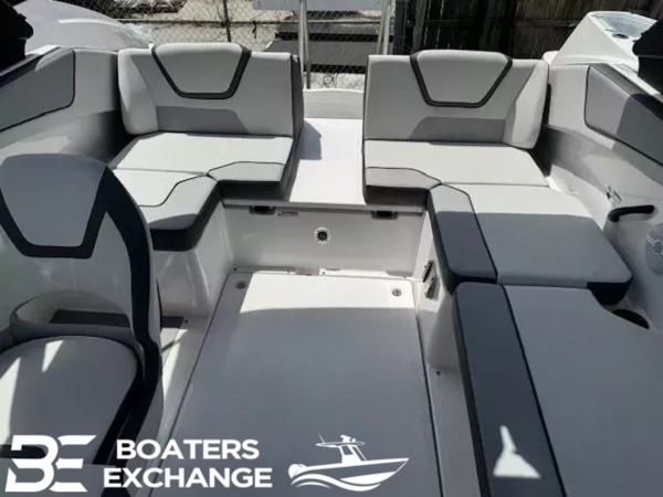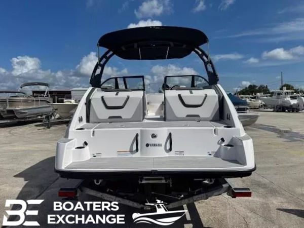 End of season Blow Out!Snap-in Marine-Grade Woven Floor MatSki LockerRemovable Dinette Table with PedestalBow Filler Inserts for Multiple Seating ConfigurationsHinged Seat CushionsTilt SteeringAdjustable Captain's Chair with Flip-up BolsterGlove BoxWalk-Through Bow DoorIntegrated Removable CoolerCourtesy Deck LightingDedicated Anchor and Rope LockerBow Reboarding LadderCockpit Drainage System (CDS)Integrated Drink HoldersIntegrated Swim PlatformUpholstered Cushioned BackrestsStainless Steel Telescopic Reboarding LadderMarine-Grade MatStern (Wet) StorageConnext with TouchscreenCustom Fit Smartphone HolderBoat Wellness Function DisplayHelm Switch PanelsMarine StereoWireless Charging PointsAUXBluetooth CapabilityUSB Charge PortsUSB/AUX Input12V OutletMarine Speakers3 Position "No Wake Mode" ControlCruise AssistDepth FinderWater TemperatureElectronic SpeedometerFuel Management SystemDual Battery SetupRack & Pinion SteeringQuiet Cruise TechnologyArticulating Keel SystemYamaha Marine EngineTwin 3-Cylinder, 4-Stroke TR-1 Yamaha Marine EnginesStainless Steel Bow RailsStainless Steel CleatsTow HookBimini TopAluminum Folding Wakeboard Tower with Tow HookWindshield MirrorPainted Trailer with Swing-Away TongueSpare Tire and MountDisk BrakesChrome Wheels & Aluminum Fender Step PlatesLightsSafety ChainsAdjustable Winch Stand with Strap and Hook
