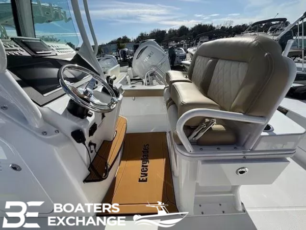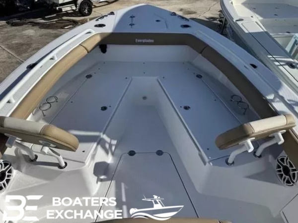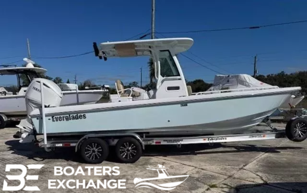 Underside of Hardtop (Ice Blue) upgradeYamahasingle White Engine 350 HP w/DES~350Canvas Package-Console Cover, Forward Console Seat Cover, Helm Seat CoverTrolling Motor Prep w/ChargerAnti-Fatigue Helm Mat-Storm GrayAudio System, Premium-Stereo Head, 7.7" Speakers (qty 2),8.8" Speakers (qty 4), 10" Subwoofer, XDM 800 AmplifierUnderwater Lights, Spectrum Quattro, RgbwWindlass, Low Profile, V700Tandem Axle Trailer with Brakes (Both Axles)LED LightsRatchet Tie Down Straps (Pair)Spare Tire with CarrierAluminum WheelsElite Package Includes: Garmin VHF 215, Dual Gpsmap 8612 Chart Plotter, B175 High-Wide TransducerTrailer INCLUDED in priceBoaters Exchange DiscountADDITIONAL BOAT SHOW DISCOUNTConstructionUnsinkableLifetime Hull Warranty and 3 Year Component WarrantyVariable Deadrise Deep v-HullPatented Closed Molded Ramcap Construction ProcessNMMA CertifiedSelf-Bailing CockpitNo Wood ConstructionHigh Density, Closed Cell, Structural Foam FlotationHull Laminate-Premium Gel Coat, Vinyl-Ester Barrier and Knitted bi-Axle FiberglassHigh Density Composite TransomHull Liner and Deck Mated Perfectly for a Rigid one-Piece Construction, Adding to its Long TermDurabilityHull Liner Completely Finished InsideMolded-in Diamond non-SkidRigging Troughs-Molded-in and Oversized for Easy AccessABS Backing Used to Receive Self Tapping Screws and BoltsAluminum Framework Fabricated in-House, Sand Blasted Then Powder Coated Using Premium MarineGrade MaterialsWire Harnesses-Manufactured in-House Using Marine Grade MaterialsCircuit Protection-Circuit Breakers or Fuses Protect all Electrical CircuitsHeavy-Duty rub Rail with 316 Stainless Steel Insert and end Caps316 Cast Stainless Steel and Chrome Plated Fasteners for Additional Corrosion and Stain ResistanceAll Hardware Bedded or Gasketed to Resist CorrosionHeavy-Duty, Welded Bow and Stern Eyes, Bedded and Sealed in PolyurethaneBronze High Speed Intake StrainersTranshield Shipping CoverConsolePatented Hydraulic Sliding Windshield with Tempered Glass and Intelligent Wiper & Washer SystemConsole Glove box/Storage binConsole Power Port & USB Charging PortsStainless Steel Drink Holders (2)CompassStainless Steel Steering WheelMolded-in Fiberglass Footrest at the HelmHardtopFiberglass Hardtop with Aluminum Powder-Coated Frame Includes LED Lights, Spreader Lights,Electronics box, (4) Rod Holders, ski PylonHardtopCanvas Life Jacket Storage in Hard TopDeck/Cockpit200Ft 1/2-8Plait 10Ft 3/8 Chain with Swivel and AnchorFull Spectrum LED Lights8" Pull-up Cleats Cast 316 Stainless Steel & Through Bolted (6)Stainless Steel Drink HoldersRecessed Cockpit DrainsLow Profile Aluminum Powder-Coated Bow RailsCockpit Coaming BolstersForward Console SeatingBow Seating with Removable Forward Facing Backrests and Locking StorageStern Seats with Folding Backrest That Converts to Casting PlatformHelm Seat with ArmrestFishabilityCooler-Built in 87qtCirculating Livewell with Light & Clear Acrylic lid with Stainless Steel Friction Hinges and Latch-26galFish box (fwd.)-69galRod/cup Holders (6)Under Gunwale Power Ports-30AUnder Gunwale Rod Racks (2) on Each SideMechanical &ElectricalAutomatic Bilge Pump(s)High-Water AlarmOptionsLight BarRod/Cup Holder Combos (4)-2 FWD; 2 BowJL M6 Series LED Speaker UpgradeLED Underwater LightsOutrigger Quick-cam CleatsGemlux Outrigger Package-18' PolesT&H Atlas Jack PlateMinn Kota Ulterra Trolling Motor8' Power Pole Blade Black or WhiteAdditional Swim Platform with LadderHeavy-Duty tow eyeSport Station: 3 Position Sliding sun Roof/Helm Seat, Poly cup Holders, Footrest, Trim Tab Indicators,Garmin GHS 11Wired Handset, Garmin 8610 Additional ScreenAnti-Fatigue Helm pad-Mocha or Storm GrayRemovable Bow Filler with CushionWindlass, Low Profile, V700Canvas & UpholsteryUpholstery Colors: Solid White, Coconut tan, or Flint GrayCanvas Colors: Black, Blue, Silver, tan and WhiteCanvas Package: Helm Seat Cover, Forward Console Seat Cover & Console CoverUpper Station CoverMooring CoverMediterranean Bow Shade-WhiteGel Coat & PaintAll Gel Coat Color Options can be to the Waterline or Complete HullHardtop Undersides can be Matched to Hull Color (Gelcoat Only)Ice Blue, Major Blue, Whisper Green, Storm Gray, Whisper GraSee Your Local Dealer for an Everglades Awlgrip Paint ChartPremium Powder Coating to Match Hull Color (Gelcoat Only)Black Powder CoatingElectronicsGarmin Base Package: VHF 215, Single Display Gpsmap 943xsv Chart Plotter, B175HWTransducerGarmin Base Dual Package: VHF 215, Dual Display Gpsmap 943xsv Chart Plotter, B175HWTransducerGarmin Prime Package: VHF 215, Single Display Gpsmap 8612xsv Chart Plotter, B175HWTransducerGarmin Elite Package: VHF 215, Dual Display Gpsmap 8612xsv Chart Plotter, B175HWTransducerGarmin Premium Package: VHF 215, Dual Display Gpsmap 8612xsv Chart Plotter, ChirpTransducers B175H &B175L, Radar Fantom 24GXM 54 Siriusxm Marine Weather Receiver & Audio (Requires Subscription)Base Audio Option Stereo Head, 7.7 Speakers (qty 2), 6.5 Speakers (qty 2)Premium Audio Option Stereo Head, 7.7 Speakers (qty 2), 8.8 Speakers (qty 4), 10 Subwoofer,& XDM 800 AmplifierEnginesYamaha White Single Enginge 300HP w/EPSYamaha 350HP Single White Engine w/DESMercury V10 Cold Fusion White Single Engine 400HP w/EPSLED Full Spectrum LightingLED Anchor Light & Navigation LightsLED Courtesy LightingElectric HornEngine Starting Battery Bank with Charging SystemHouse Battery Bank with Charging SystemStainless Steel Trim Tabs with Position Indicator and Auto Retract (Single Cylinder)Raw-Water and Fresh-Water Washdown Spigotsthe Dealership is not Responsible for any Errors or Omissions Made in the List of Standard Features.