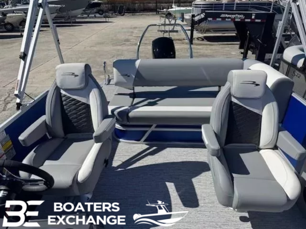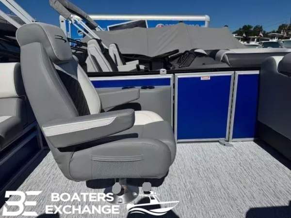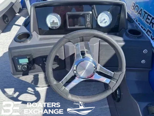 911171-Mercury Mechanical Pre-Rig (150-) (S)921009-12 Button Digital Switching921025-5" Vivid UX Digital Gauges with 7" Garmin Echomap 52CV Chartplotter921020-Master Power, Horn, Usbp Panel with Wireless Charging Dock908224-Dimensional Brushed Silver Logos903990-Heavy Duty Rub Rail914001-Extended Aft Deck (Heavy Duty)904768-Ski Tow Bar (Ext. Aft Deck w/ Rub Rail)909310-Metal Jacket Tube Protectant (3 Tube)918084-Captain's Mid-Back Recliner (Shadow Grey/Ice White/RF918201-Co-Captain's Mid-Back Recliner (Shadow Grey/Ice White/RF)906985-Bench Livewell (SV/S)921050-Fiberglass Console Upgrade908552-Serene Soft Touch Vinyl w/ Simtex Accents and Diamond Pressed Lumbar921054-Wireless Charger901262-Battery: Dual Switch with Fuse904601-Saltwater Anode ESP/SPS Package w/ Sealed Lifting Strakes904951-SPS Performance Package-33 gal. Transom Direct Fill 21'900849-Sunshine Package903801-Double Bimini (15.5') (S)908612-Standard S TrimSwingback PrivacyTrailer NOT INCLUDED in price but is available.Boat show discount12 Volt Receptacle USB A/CConsole Courtesy LightCustom Sterling Gauge Package: Fuel, Tachometer and TrimHour MeterIronwood Dash AccentsLocking Helm Glove BoxLocking Side Access Console DoorNew Rockford Fosgate PMX-1 HeadunitNew Rockford Fosgate RM0625 SpeakersOne Piece Rotomold Console with BenchPolished Steering WheelRocker Switches with Dash Mount BreakersS Series Versa HelmSealed Deutsch Connectors.250 in. Thick Bow and Stern Cross Channels25" Pontoons6 in. Stainless Steel CleatsAnodized Raised RailsDeep-Step Stern Boarding LadderExtruded Splash GuardsFlush Bow DeckFull Length Extruded Anodized SkirtingIntegrated Docking and Nav LightsMooring Cover Quick ClipsQuick Release 10 Ft. Bimini Top with Surlast Embroidered Boot, 1.25 in. Frame and Trailering StrutsRaised Bennington LogosRounded Solid KeelsS Series Anodized Streamline Rail System with Full Height PanelsStainless Steel Corner CastingsStainless Steel Deck Bolts (Fanged Elevator Bolts Secured with Stainless Steel Nylock Nut.)Stern DeckSurlast Mooring CoverUnderdeck Spray DeflectorsBenny Quick Clip Fender Latch Kit1 Chaise Lounge24 Gallon Fuel Tank, 21.4 Gallon Usable CapacityCaptain and Co-Captain Seating (2 Pure-Comfort Reclining Helm Chairs with Integrated Headrests)Duraframe Seat BasesFire ExtinguisherLighted Gate GlidesNew Shoreline Woven Vinyl FlooringPowder Coated Seat HingesSerene Soft Touch Base Vinyl with Simtex AccentSoft Sided Bag CoolerStainless Steel Black Rimmed CupholdersStowable Sculpted Rectangular Black TableTransom Fuel TankWaste Container10-Year Bow-to-Stern Warranty*Industry Leading Factory Backed Lifetime Structural and Deck Warrantythe Dealership is not Responsible for any Errors or Omissions Made in the List of Standard Features.