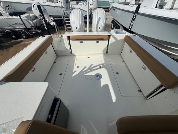 Cushions (Caramel & Khaki) upgradePowder Coating Package (White Dual Console) upgradeRub Rails (White Rub Rail with Stainless Stell Insert Upgrade) upgradeYamaha Twin 200XSA2 (White) 400HPHelm Master, EX DES Twin Engine W/ISO ChargerDigital Electric SteeringGEM Stainless SteelTrim Tab IndicatorSeating, Starboard SideSeating, Port SideFaux Teak Decking Kit, Brown and BlackKitchenette, Upgrade with Grill, Refrigerator, Shore PowerFull Cockpit Shade, Push-Button ElectricStereo, JL Audio with Amp and Speakers, 8 WhiteSki PylonForward Table and Sun LoungeFish Box Pump-Out with Macerator (2)Windlass Deluxe - Chain, Rope, S/S Anchor and Stem Chafing GuardWireless Remote for Windlass SystemLine Upgrade for Windlass System - 300FtBattery Charger (4-Bank with Inlet)Under Water Lights, Blue (Set of 2)Tandem Axle Trailer with Brakes (Both Axles)Disk BrakesGuide PolesLED LightsSpare Tire with CarrierAluminum WheelsBoaters Exchange Discount "VarisYamaha Twin 200XSA (Grey)Helm Master, EX DES Twin Engine W/ISO ChargerGEM Stainless SteelTrim TabsTrim Tab IndicatorYamaha Fuel/Water Separator & Control CablesWaterproof Deutsch Electrical ConnectorsHull 2-Tone StandardHull Color Hull 2-Tone Pure WhiteHelm Seating Helm SeatingHelm Seat, Premium 4-way ElectricCushions Cushion Color WhiteHideaway Aft Bench Seating and Optional Side SeatingCockpit BolstersCushion, Bow (9 PC Set)Double Lounge Seat w/ CoolerScalable Plush Seating for up to 10 PassengersFiberglass Hard TopElectric Head with MaceratorStereo, JL Audio with Amp & Speakers, 8 WhiteFresh Water Washdown SystemRaw Water WashdownTable, AftBoarding Ladder (Covered Stern, Hideaway Bow)SS Flush Mount Flip-up Bow LightFresh Water at Transom (25 gal Tank for 2 Sinks and Shower)Fresh Water Sink in Head & GalleyBow Rail (Fully Recessed)Galley, Standard w/ Sink & Wine CoolerHead Comfort Appointments (Toilet Paper Holder, Mirror)In-Floor Lazarette for Access to RiggingInsulat