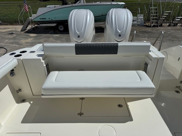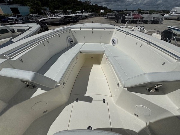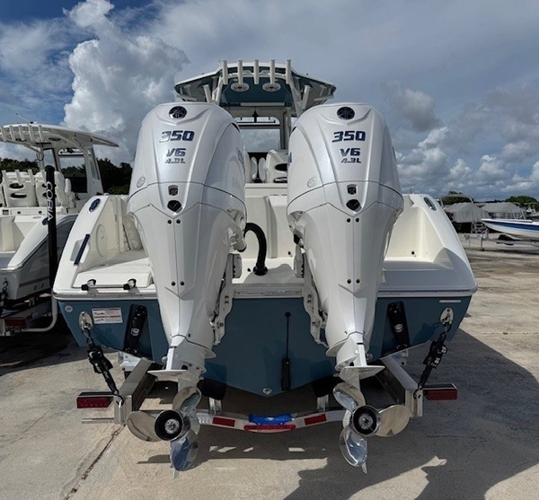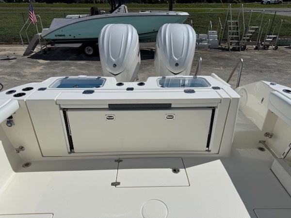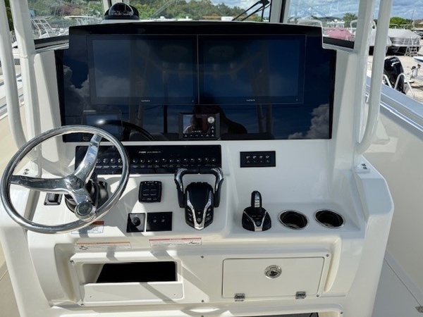 Rub Rails (White Rub Rail with Stainless Stell Insert Upgrade) upgradeYamaha Twin F350XSA2 (White) 700HPHelm Master, EX DES Twin Engine W AP/JOY/ISO ChargerDigital Electric SteeringGEM Stainless SteelTrim TabsTrim Tab IndicatorBow Cushion PackageFaux Teak Decking Kit, Grey and BlackHardtop with Integrated Frame and Glass Windshield, White Powder CoatingSun Shade, BowStereo, JL Audio with Amp and Speakers, 4 WhiteSpeakers, JL Audio for Hard Top, 4 WhiteBoarding LadderCockpit Toe RailDeep Drop Set-Up (Reinforced Gunnel Boards and Electric Reel Outlets)Kingfish Rod Holders (1 Port, 1 Stbd), Hard TopFlush-Mount Kite Rod Holder (4)Outriggers for HardtopVHF 215 Radio-Hard-Top LocationGarmin Dual Gpsmap 1243xsv with Acrylic Dash, GT56UHD & GT12M TransducersWindlass Deluxe - 400 Ft Line, SS AnchorWireless Remote for Windlass SystemFresh Water Washdown for WindlassBattery Charger (4-Bank with Inlet)Under Water Lights, Blue (Set of 2)Battery, 31 Series (Qty 4)Boaters Exchange Discount "VarisYamaha Twin F300XSB (Grey)Helm Master, EX DES Twin Engine W/ISO ChargerGEM Stainless SteelTrim TabsTrim Tab IndicatorYamaha Fuel/Water Separator & Control CablesWaterproof Deutsch Electrical ConnectorsHull 2-Tone StandardHull Color Hull 2-Tone Pure WhiteCushions Cushion Color WhiteBow Cushion PkgCockpit BolstersFaux Teak Decking Kit, Grey & BlackHardtop with Integrated Frame and Glass Windshield, White Powder CoatingElectric Head with Macerator (with Port Window)Stereo, JL Audio with Amp & Speakers, 4 WhiteSpeakers, JL Audio for Hard Top, 4 WhiteFresh Water Washdown SystemRaw Water WashdownElectronically Adjusted Forward Table/sun Lounge (Flushes Into Floor)Boarding Ladder (Covered)Forward Console Access DoorFresh Water at Transom (25 gal Tank for 2 Sinks and Shower)Fresh Water Sink in ConsoleBow Rail (Fully Recessed)Head Closet w/ HangersHead Comfort Appointments (Towel Bar, Toilet Paper Holder, Mirror)Opening Port Window(s)Roomy Walk Down Head Area with Sink and Corian To