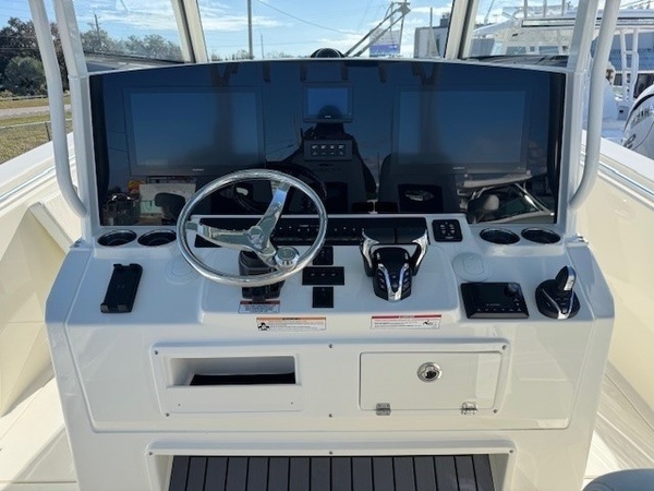 Boot Stripe (White) upgradeRub Rails (White Rub Rail with Stainless Stell Insert Upgrade) upgradeYamaha Triple F350XSA2 (White) 1050HPHelm Master, EX with Des, Auto Pilot, JoystickDigital Electric SteeringGEM Stainless SteelTrim TabsForward Facing Bow Backrest 350 CCFaux Teak Decking Kit, Grey and BlackHardtop with Integrated Frame and Glass Windshield, White Powder CoatingSun Shade, BowStereo, JL Audio with Amp and Speakers, 4 WhiteSpeakers, JL Audio for Hard Top, 4 WhiteFresh Water Flush for Electric HeadBoarding LadderAir ConditionerDeep Drop Set-Up (Reinforced Gunnel Boards and Electric Reel Outlets)Kingfish Rod Holders (1 Port, 1 Stbd), Hard TopFlush-Mount Kite Rod Holder (4)Outriggers for HardtopVHF 215 Radio-Hard-Top LocationGarmin Dual Gpsmap 1243xsv with Acrylic Dash, GT56UHD & GT12M TransducersWireless Phone ChargerWindlass Deluxe - 400 Ft Line, SS AnchorFresh Water Washdown for WindlassWired Remote At Bow for Windlass SystemBattery Charger (4-Bank with Inlet)Under Water Lights, Blue (Set of 4)Battery, 31 Series (Qty 6)Trailer Not Included but AvailableNAP Discount "VarisYamaha Twin XF450NSA (Grey)Helm Master, EX Twin XTO Des OnlyGEM Stainless SteelYamaha Fuel/Water Separator & Control CablesWaterproof Deutsch Electrical ConnectorsHull 2-Tone StandardHull Color Hull 2-Tone Pure WhiteCushions Cushion Color WhiteForward Facing Bow Backrest 350 CCCockpit BolstersCushion, Bow (11 PC Set)Faux Teak Decking Kit, Grey & BlackHardtop with Integrated Frame and Glass Windshield, White Powder CoatingElectric Head with Macerator (with Port Window)Stereo, JL Audio with Amp & Speakers, 4 WhiteSpeakers, JL Audio for Hard Top, 4 WhiteFresh Water Washdown SystemRaw Water WashdownElectronically Adjusted Forward Table/sun Lounge (Flushes Into Floor)Boarding Ladder (Covered)Fresh Water at Transom and Tackle StationFresh Water Sink in ConsoleBow Rail (Fully Recessed)Head Comfort Appointments (Towel Bar, Toilet Paper Holder, Mirror)In-Floor Lazarette for Access to RiggingInsulated Cooler in ConsoleOpening Port Window(s)Side Dive, Tuna and Dockside Boardingdoor (In