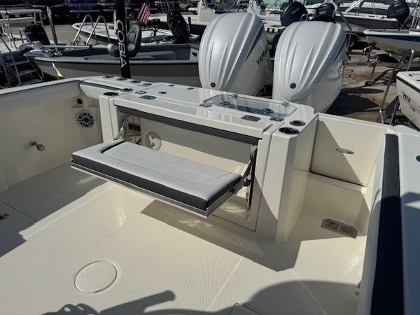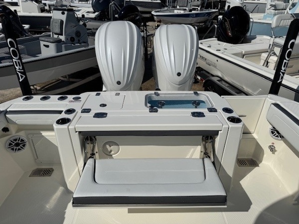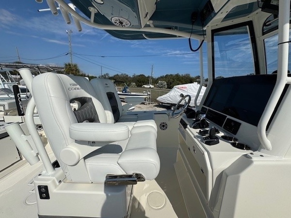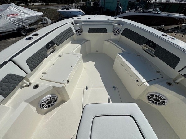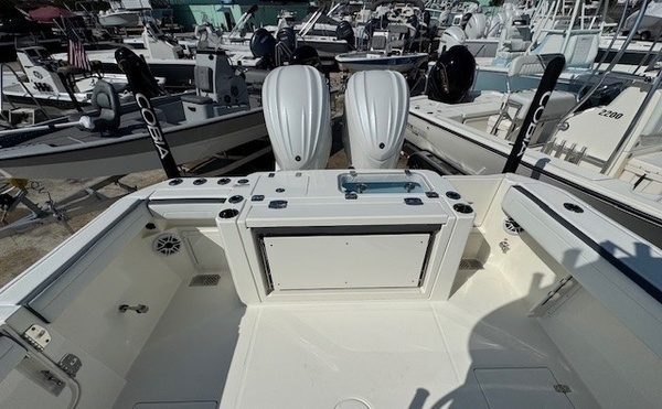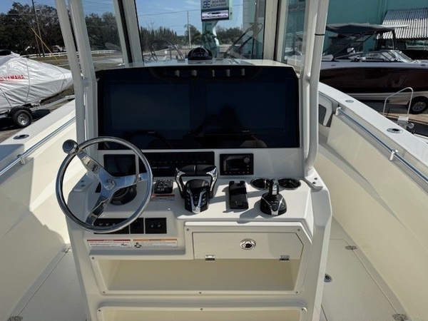 Hull (Bayside Blue Standard 2-Tone) upgradeGelcoat Hardtop, 2-Tone Underside (Bayside Blue) upgradeYamaha Twin F300XSB2 (White) 600HPHelm Master, EX DES Twin Engine w AP/JOY /ISO ChargerDigital Electric SteeringGEM Stainless SteelTrim Tab IndicatorHelm Seat Premium W Tackle Center & Cooler W/SlideCushion Color -2-Tone Platinum & WhiteBow Cushion Pkg w/FF BackrestHardtop with Integrated Frame and Glass Windshield, White Powder CoatingSun Shade, BowSpeakers, JL Audio for Hard Top, 4 WhiteStereo, JL Audio with Amp, 2 Sub Woofers, & Speakers, 6 WhiteBoarding LadderRod Rack for Leaning PostOutriggers for HardtopVHF 215 Radio-Hard-Top LocationGarmin Dual Gpsmap8616 with GT56UHD-TM , Airmar B175L TransducersWireless Phone ChargerWindlass Deluxe - Chain, Rope, S/S Anchor & Stem Chafing GuardWireless Remote for Windlass SystemFresh Water Washdown for WindlassLine Upgrade for Windlass System - 300FtTrolling Motor PrepHelm Seat Base or Leaning Post FRP - Pure WhiteHelm Seat Tackle Station Trim - WhiteHardtop Trim - WhiteWhite rub Rail with Stainless Steel Insert UpgradeBattery Charger (4-Bank with Inlet)Underwater Lights, Blue (Set of 2)Ultra Bilge Pump Switch (Upgrade)Trailer NOT included unless otherwise specifiedBoaters Exchange DiscountDaytona boat show special "**the Dealership is not Responsible for any Errors or Omissions Made in the List of Standard Features.**ConstructionVarisSteering & Handling Steering WheelGEM Stainless SteelSteering & Handling Trim Tabs & IndicatorsTrim TabsSteering & Handling Other OptionsYamaha Fuel/Water Separator & Control Cables (w/ Engine OptionWaterproof Deutsch Electrical ConnectorsHull Color Hull Color PatternHull SolidHull Color Hull 2-TonePure WhiteHelm Seating Helm SeatingHelm Seat Std W/Tackle StationCushions Cushion ColorWhiteCushions Cushion OptionsHideaway Aft Bench SeatingCockpit BolstersConsole Seating w/ Backrest & CushionFamily Features TopsNoneFamily Features HeadElectric Head with Macerator (with Port Window)Family Features Washdown SystemsFresh Water Washdown SystemRaw Water WashdownFamily Features Comfort and ConvenienceManually Adjusted FWD Table/sun Lounge (Flushes Into Floor)Boarding Ladder (Covered)Forward Console Access DoorFresh Water at TransomFresh Water Sink in ConsoleBow