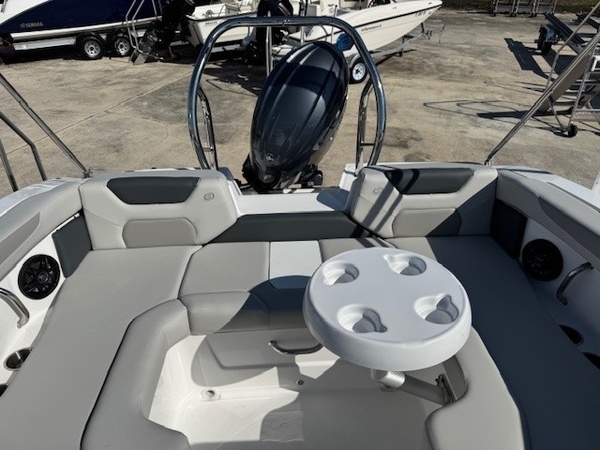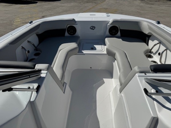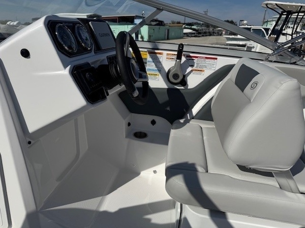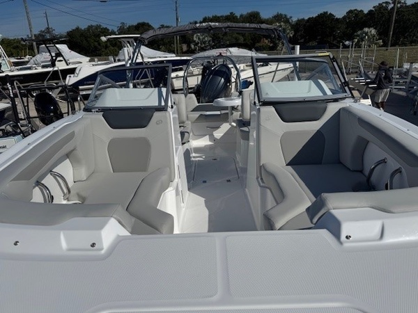 Hull (Full Hull - Pacific) upgradeYamaha F150XD 150HPEngine: Install - 150HP and LowerRigging - YamahaPreferred Options Package - Boat Cover & Stern Wash DownSS Rubrail (White) w/ SS Insert & SS Canopy Frame - SS Rubrail (White), SS Cupholders, Pull-up Cleats (4), SS Fuel Cap, SS Canopy Frame, SS Grab Handle, SS Fuel FillCaptain's Seat - Built in Seat with BolsterGarmin Gpsmap 743xsv: External Transducer - 7"" Fishfinder/Chartplotter w/ Saltwater SD CardGlovebox - White Lockable GloveboxWindshield CatchRound Table: WhiteDeluxe Ski Tow - cage styleTrailer NOT includedBoaters Exchange DiscountJANUARY 2026 Factory Rebate Boat Only PriceSteering - Sea Star Hydraulic - Tilt Wheel: (Required for 150 HP +)Rubrail: White w/ Vinyl InsertAluminum Canopy Frame - with Protective BootAnchor LockerBilge Pump - AutomaticBow TelescopingDrilled TransomDual with TraysStern TelescopingStorage Tubs - Gel Coated FiberglassSwim Platform: HalfClarion Silver - CMM-20 Head Unit with LCD Display, Bluetooth, AUX Input, 4X25 W RMS Output and Four 6.5"" Speakers with Black Grilles(no Sirius/XM Option)Captain's Seat - Build in SeatDash Instrument Panel - Featuring fog Resistant Gauges: Speedometer: Fuel: Hour: Voltmeter: Tachometer: Horn & 12V OutletSteering Wheel - Standard - State Standard for Each ModelTrim Gauge with Engine PackageUSB A & C Chargers with Voltage Readout - Qty and Location Vary by ModelWindshield Frame: SilverCo-Captain Seat - Seat: Mate: Port Side**the Dealership is not Responsible for any Errors or Omissions Made in the List of Standard Features.**