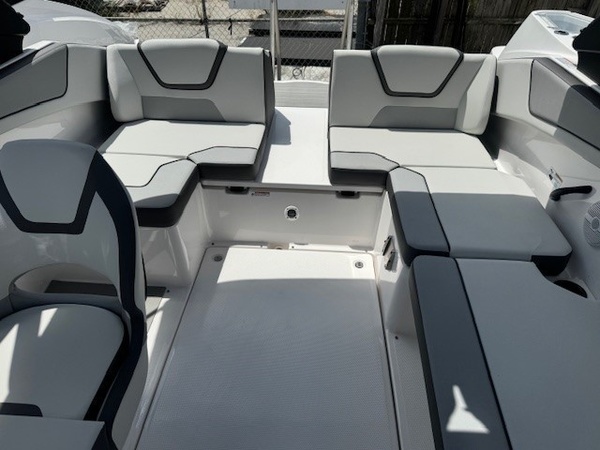 Galvanized TrailerEnd of season Blow Out! "**the Dealership is not Responsible for any Errors or Omissions Made in the List of Standard Features.**Snap-in Marine-Grade Woven Floor MatSki LockerRemovable Dinette Table with PedestalBow Filler Inserts for Multiple Seating ConfigurationsHinged Seat CushionsTilt SteeringAdjustable Captain's Chair with Flip-up BolsterGlove BoxWalk-Through Bow DoorIntegrated Removable CoolerCourtesy Deck LightingDedicated Anchor and Rope LockerBow Reboarding LadderCockpit Drainage System (CDS)Integrated Drink HoldersIntegrated Swim PlatformUpholstered Cushioned BackrestsStainless Steel Telescopic Reboarding LadderMarine-Grade MatStern (Wet) StorageConnext with TouchscreenCustom Fit Smartphone HolderBoat Wellness Function DisplayHelm Switch PanelsMarine StereoWireless Charging PointsAUXBluetooth CapabilityUSB Charge PortsUSB/AUX Input12V OutletMarine Speakers3 Position ""No Wake Mode"" ControlCruise AssistDepth FinderWater TemperatureElectronic SpeedometerFuel Management SystemDual Bat