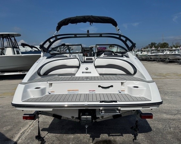 Galvanized TrailerFLORIDA TIRE DISPOSAL FEE (Set this to $1 per new tire)End of season Blow Out!Trailer INCLUDED! "**the Dealership is not Responsible for any Errors or Omissions Made in the List of Standard Features.**Snap-in Marine-Grade Woven Floor MatSki LockerRemovable Dinette Table with PedestalBow Filler Inserts for Multiple Seating ConfigurationsHinged Seat CushionsTilt SteeringAdjustable Captain's Chair with Flip-up BolsterGlove BoxIntegrated Removable CoolerCourtesy Deck LightingDedicated Anchor and Rope LockerUpgraded Aluminum Handles & AccentsCockpit Drainage System (CDS)Integrated Drink HoldersIntegrated Swim PlatformUpholstered Cushioned BackrestsStainless Steel Telescopic Reboarding LadderMarine-Grade MatStern (Wet) StorageConnext with TouchscreenCustom Fit Smartphone HolderBoat Wellness Function DisplayMarine StereoAUXBluetooth Capability12V OutletMarine Speakers3 Position ""No Wake Mode"" ControlCruise AssistCompassDepth FinderWater TemperatureElectronic SpeedometerFuel Management SystemRack & Pinion SteeringQuiet Cruise TechnologyArticulating Keel SystemYamaha Mari