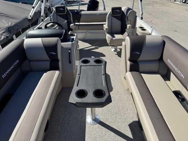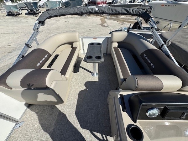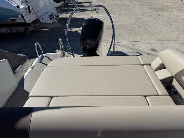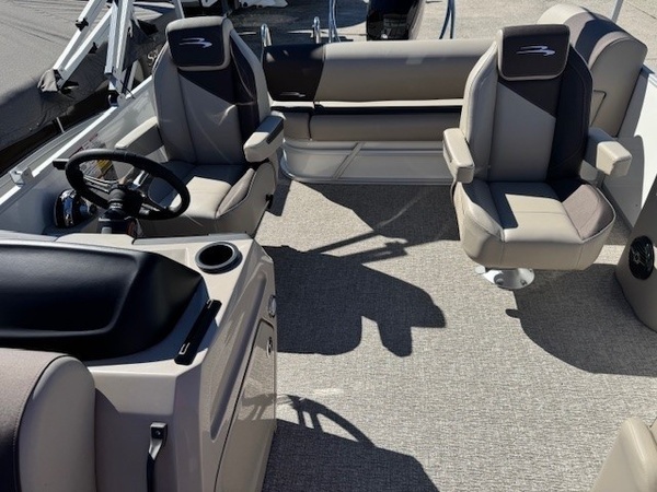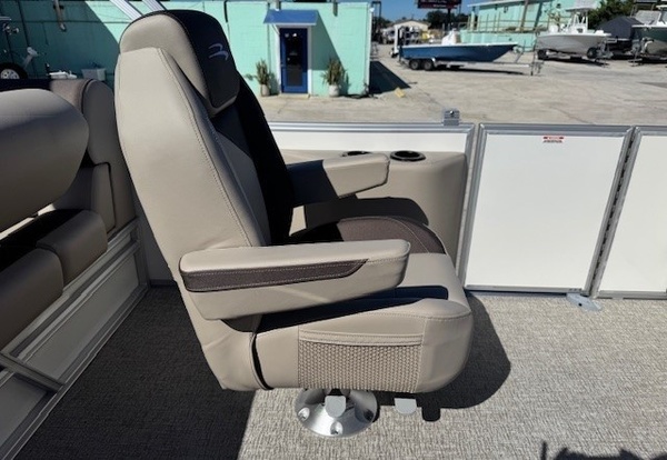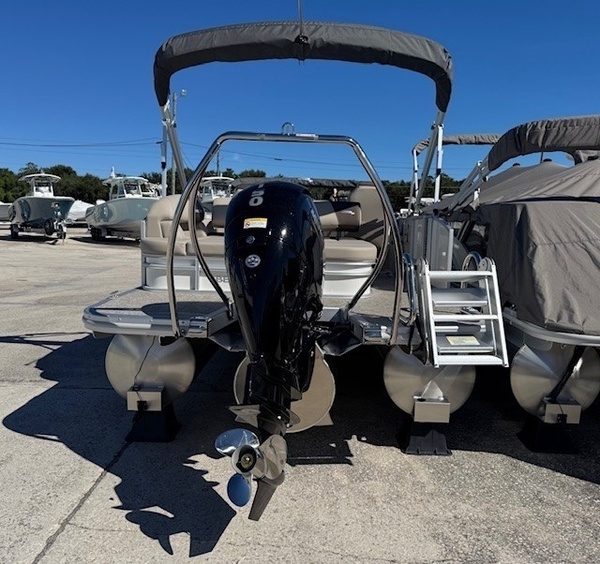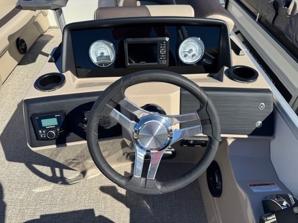 Mercury 150 HP 4 Stroke EFI 25 in CL 150HP911171 - Mercury Mechanical Pre-Rig (150-) (S)921009 - 12 Button Digital Switching921025 - 5"" Vivid UX Digital Gauges with 7"" Garmin Echomap 52CV Chartplotter921020 - Master Power, Horn, Usbp Panel with Wireless Charging Dock908224 - Dimensional Brushed Silver Logos903990 - Heavy Duty Rub Rail914001 - Extended Aft Deck (Heavy Duty)904768 - Ski Tow Bar (Ext. Aft Deck w/ Rub Rail)909310 - Metal Jacket Tube Protectant (3 Tube)918098 - Captain's Mid-Back Recliner (Dolce/Espresso/NRF)918215 - Co-Captain's Mid-Back Recliner (Dolce/Espresso/NRF)921049 - Fiberglass Console Upgrade902363 - Serene Soft Touch Vinyl w/ Simtex Accents901906 - Console Dolce921054 - Wireless Charger901262 - Battery: Dual Switch with Fuse904601 - Saltwater Anode ESP/SPS Package w/ Sealed Lifting Strakes904951 - SPS Performance Package - 33 gal. Transom Direct Fill 21'900849 - Sunshine Package903801 - Double Bimini (15.5') (S)908612 - Standard S TrimSwingback PrivacyBoaters Exchange Discount "Package Price - Yamaha T50LC Fourstroke 50HP12 Volt Receptacle USB A/CConsole Courtesy LightCustom Sterling Gauge Package: Fuel, Tachometer and TrimHour MeterIronwood Dash AccentsLocking Helm Glove BoxLocking Side Access Console DoorNew Rockford Fosgate PMX-1 HeadunitNew Rockford Fosgate RM0625 SpeakersOne Piece Rotomold Console with BenchPolished Steering WheelRocker Switches with Dash Mount BreakersS Series Versa HelmSealed Deutsch Connectors.250 in. Thick Bow and Stern Cross Channels25"" Pontoons6 in. Stainless Steel CleatsAnodized Raised RailsDeep-Step Stern Boarding LadderExtruded Splash GuardsFlush Bow DeckFull Length Extruded Anodized SkirtingIntegrated Docking and Nav LightsMooring Cover Quick ClipsQuick Release 10 Ft. Bimini Top with Surlast Embroidered Boot, 1.25 in. Frame and Trailering StrutsRaised Bennington LogosRounded Solid KeelsS Series Anodized Streamline Rail System with Full Height PanelsStainless Steel Corner CastingsStainless Steel Deck Bolts (Fanged Eleva