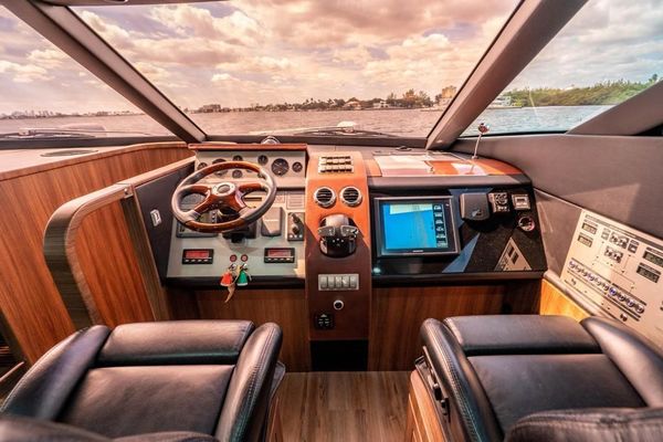 -2 Garmin MFD's -Side-Power bow and stern thruster -Fusion radio -ACR search light -ICOM VHF -Lewmar windlass control -ZF controls -3 cup holders -Raymarine autopilot