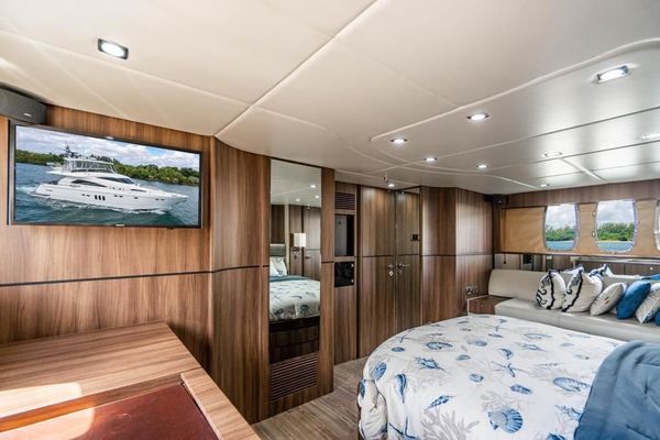 -Island berth -Couch to starboard -Full size dresser to port -Flat screen tv -Full size closet -Ensuite head