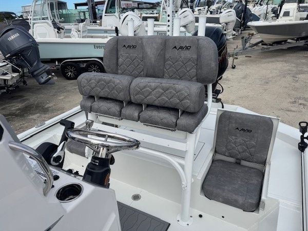 5 Drawer Console Tackle StorageAcrylic Console Glove BoxBaystar Tilt Steering UpgradeBOB'S 6 Hydraulic Jack PlateJBL Stereo w/Two 6.5"" JBL SpeakersPremium LP with Backrest and Flip Up BolstersRailblaza Quick Release Rod Holder (Price Each)Reflex Anti Fatigue Helm MatSS Pkg. Includes Cupholders (2), Compression Latches, Grab Handles, and Cleats (6)Three Bank Minn Kota ChargerPowertech SS 4 Blade Prop, VF115LBGarmin 7"" Echomap Plus w/GT23M TranducerMinn Kota Raptor 10' White w/ Jack Plate Mounting BracketMinn Kota Riptide Terrova 24V 54"" Shaft 80 Lb ThrustSpare TireStainless Steel Retractable TiedownsStandardTrailer INCLUDED in price!!FLORIDA TIRE DISPOSAL FEE (Set this to $1 per new tire)Boaters Exchange Discount "Yamaha VF115LB SHO - Includes Baystar Steering 115HPTrailer Package - Single Axle Aluminum Trailer with 14"" MAG Wheels - Brakes not IncludedConstructionWood Free Construction5052 Aluminum Marine Grade AlloyHull Gauge Thickness 0.125Limited Lifetime Hull WarrantyPolyurea Non-Skid InteriorSolid Marine Grade Closed Cell Flotation Foam Throughout HullVersatec GunnelTrutrac Tunnel HullPremium Fiberglass ConsoleBaystar Plus Hydraulic SteeringYamaha Control CablesOversize Bow Storage Comparment w Dual Access HatchesForward and Aft Baitwell w Overboard DrainsPlush Rear Deck Jump Seats w SS Latches & Underseat StorageOmnova Vinyl Seating w/ Nano-Block Stain ProtectionCustom Avid Model DesignatorPremium Marine Flooring in Storage BoxesHardwarePremium Compression LatchesPolished Stainless Steel Seat Bases (1) Bow & (2) Rear DeckDrink Holders - 2Versatec Mounted Cleats- 6All Thru-Bolted Lids w No RivetsMarine Grade Electrical SystemCircuit Breaker ProtectionDedicated 10 Gauge Electronics Po