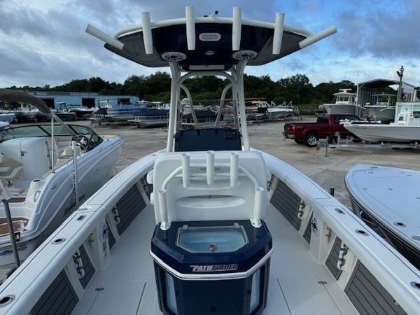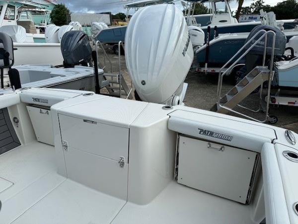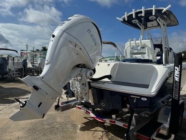 Hull (Hull Side Color to Chine -Deep Water Blue) upgradeFiberglass Cooler (Deepwater Blue) upgradeConsole Main Color (Deepwater Blue) upgradeConsole Insert Color (Deepwater Blue) upgradeHelm Seat Base or Leaning Post FRP Color (Deepwater Blue) upgradeGelcoat Hardtop, 2-Tone Underside (Deepwater Blue) upgradeYamaha F300XSB2 300HPHelm Master EX w-INT/DESDigital Electric SteeringJackplateGEM Stainless SteelTrim TabsTrim Tab IndicatorHelm Seat w/ Aquarium Livewell (40 Gal)Cushion Color - WhiteAft Seat SetBolster SetFiberglass Hard-TopStereo, JL Audio with Amp & Speakers, 4 WhiteJL Audio Speakers for Hardtop, 4 WhiteRaw Water Washdown SystemFresh Water WashdownRod Rack for Helm Seat Tackle StationRod Rack with (4) Rod Holders and (2) Kingfish Rod Holders for Hard Top (Bolt On)Fish Box Pump-Out with Macerator, ForwardFish Box Pump-Out with Macerator, Aft (2)Underwater Lights, Blue (Set of 2)Recirculation Pump, Aft CenterAdvanced Bubbler Aeration SystemGrey and Black Faux TeakConsole Trim - White (Glovebox Door and Keeper)White Trim Leaning Post LivewellUndergunnel Rod Rack - WhiteBlack Silicone ON ALL TopsidesHardtop Trim Color - WhitePowder Coating Package, White Including T-TopWhite Rub Rail with Stainless Steel Insert UpgradeTandem Axle Trailer with Brakes (Both Axles)Disk BrakesGuide PolesLED LightsRatchet Tie Down Straps (Pair)Spare Tire with CarrierAluminum WheelsTrailer INCLUDED in priceBoaters Exchange Discount "**the Dealership is not Responsible for any Errors or Omissions Made in the List of Standard Features.**ConstructionVarisSteering & Handling SteeringHydraulic SteeringSteering & Handling JackplateJackplateSteering & Handling Steering WheelGEM Stainless SteelSteering & Handling Trim Tabs & IndicatorsTrim TabsHull Color Hull Color PatternHull Solid ColorDeck Color Deck Color PatternSolidHelm Seating Leaning PostHelm Seat w/ Aquarium Livewell (40 Gal)Cushions Cushion ColorWhiteFamily Features Washdown SystemsRaw Water Washdown SystemFamily Features Comfort and ConvenienceAnchor LockerBoarding LadderLarge Guttered, Gasketed, Locking dry Storage Compartments (3)Center Console w/ Side AccessSelf-Bailing CockpitCooler Mounted in Front of Console w/ Cushion set (Deluxe Engel Cooler)Fishing Features Advanced Angling DetailsSpringline Cleats (Non- Folding)CompassConsole Windshield & GrabrailFlush-Mount Bow Cleat(s) (6 in)Flush-Mount Stern Cleat (2)In-Deck Locking Storage (Port & Stbd