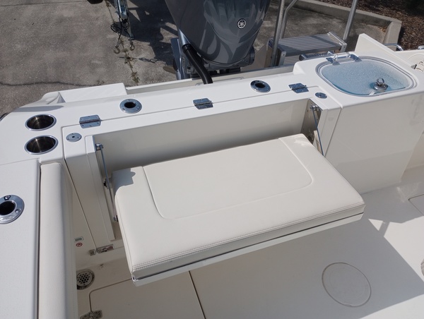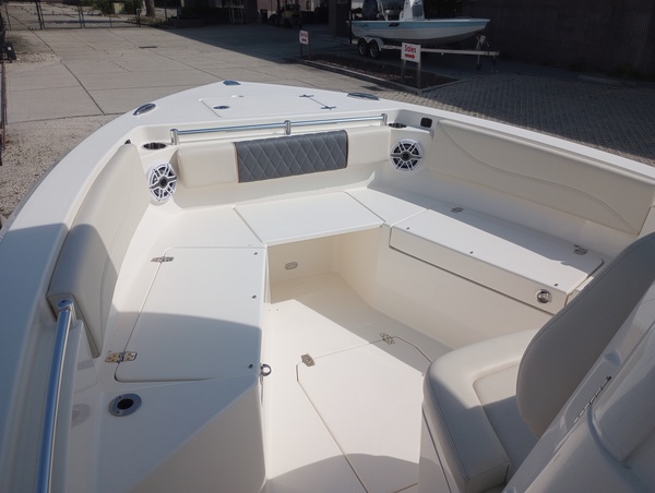 Yamaha 300NSB 300HPHelm Master, EX DES OnlyOEMDigital Electric SteeringSteering Wheel Upgrade- Edson with Power Knob (Stainless)Trim Tab IndicatorHelm Seat Tackle StationBow CushionsForward Facing Bow BackrestCushion -Tri-Color Platinum Cushions with Custom Bentley Stitching StdFiberglass Hard Top (Integrated Frame with Windshield)Raw Water WashdownFish box Pump-Out with MaceratorWindlass Deluxe-Chain Rope, Anchor, & Stem Chafing GuardStainless Steel Anchor Upgrade for Windlass SystemLine Upgrade for Windlass System-300FtHardtop Trim WhitePowder Coating Package, White Integrated HardtopWhite Rub Rail with Stainless Steel Insert UpgradeUnderwater Lights, Blue (set of 2)Battery Charger (3-Bank with Inlet)Battery, 31 Series (Qty 2)Tray & Wiring for Additional BatteryAutomatic Bilge Pump (Addl)Garmin Master Pkg-White Includes: Acrylic Dash, JL Stereo, VHF, 1242, White Spkrs*Trailer Not Included*.Fresh Water Washdown Upgrade.Yamaha Extended Warranty through 6/4/2028.Engine hours approximately 80. The Dealership is not Responsible for any Errors or Omissions Made in the List of Standard Features.GEM Stainless Steel Steering WheelYamaha Fuel/Water Separator & Control Cables (w/ Engine Option), Waterproof Deutsch Electrical ConnectorsHull 2-Tone Standard Pure WhiteLeaning Post Tackle StationCushion Color WhiteBoarding Ladder (Covered), SS Flush Mount Flip-up Bow Light, Bow Rail (Fully Recessed), Insulated Cooler in Console (24 qt)Cockpit Insulated Fish Boxes (2-33 gal), Self-Bailing Cockpit, Cleats, Heavy Duty, Pull-up (7)SS Gunnel Rod Holders, Under-Gunnel Rod StorageWhite Helm Seat Tackle Station Trim ColorBlack Rub RailCockpit Lights, Compass & Helm Footrest