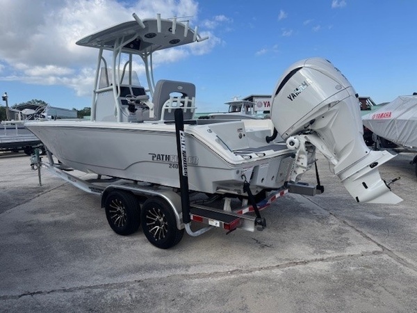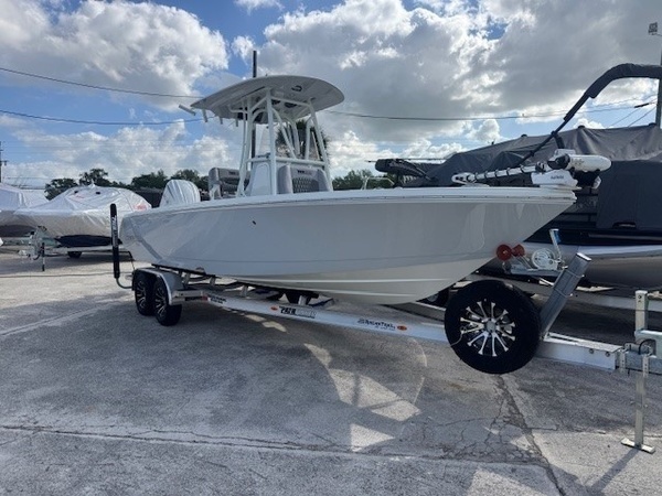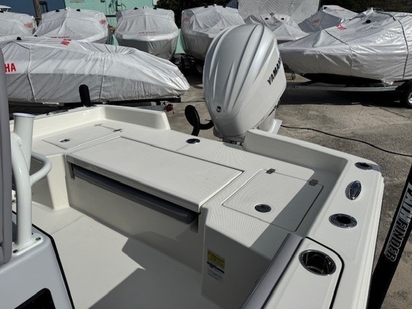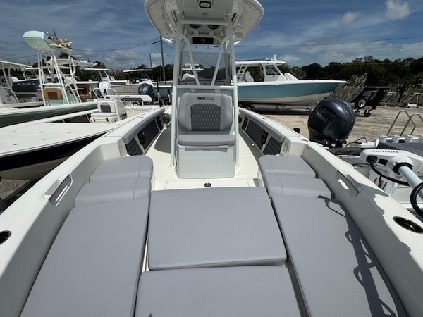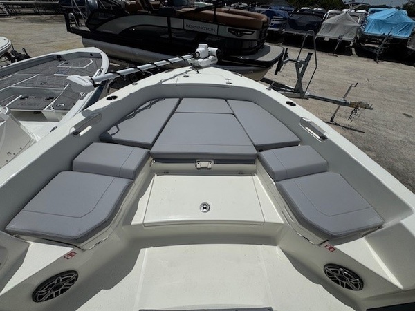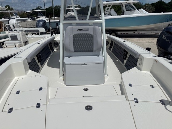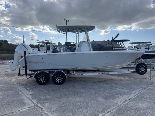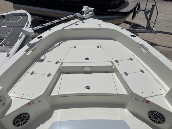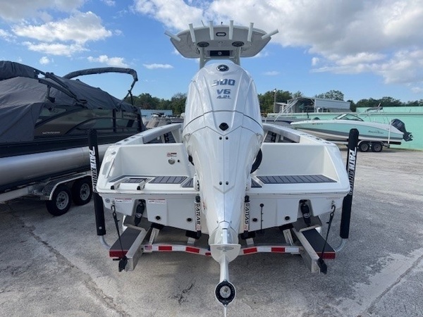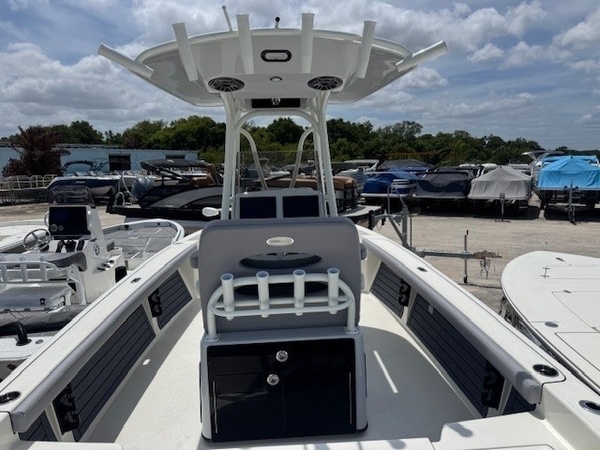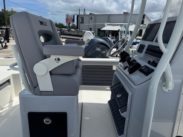 Hull (Hull Side Color to Chine -Whisper Grey) upgradeFiberglass Cooler (Whisper Grey) upgradeConsole Main Color (Whisper Grey) upgradeConsole Insert Color (Whisper Grey) upgradeHelm Seat Base or Leaning Post FRP Color (Whisper Grey) upgradeGelcoat Hardtop, 2-Tone Underside (Whisper Grey) upgradeYamaha F300XSB2 White 300HPHelm Master EX w-INT/DESDigital Electric SteeringJackplateGEM Stainless SteelTrim TabsTrim Tab IndicatorHelm Seat w/Battery Storage and Tackle TrayCushion - Platinum & StormBolster SetCushion, Bow Full Deck SetFiberglass Hard-TopSun Shade, BowStereo, JL Audio with Amp & Speakers, 4 BlackJL Audio Speakers for Hardtop, 4 BlackRaw Water Washdown SystemFresh Water WashdownSki PylonTeak Bow Table, RemovableRod Rack for Helm Seat Tackle StationRod Rack with (4) Rod Holders and (2) Kingfish Rod Holders for Hard Top (Bolt On)VHF 215 Radio Installed in Hard TopGarmin Dual 12in Touchscreen with Sonar (Gpsmap 8612XSV)Wireless Phone ChargerFish Box Pump-Out with Macerator, ForwardGarmin, Force Kraken 75"" (36V)Springline Cleats (2, Folding)Underwater Lights, Blue (Set of 2)4-Bank Battery ChargerRelease Well, Aft StarboardRecirculation Pump, Aft PortRecirculation Pump, Aft StarboardAdvanced Bubbler Aeration SystemGrey and Black Faux TeakBlack SiliconeHard Top Trim - BlackPowder Coating Package, White Including T-TopWhite Rub Rail with Stainless Steel Insert UpgradeTandem Axle Trailer with Brakes (Both Axles)Disk BrakesGuide PolesLED LightsRatchet Tie Down Straps (Pair)Spare Tire with CarrierAluminum WheelsTrailer INCLUDED in price!Boaters Exchange Discount "Steering & Handling SteeringHydraulic SteeringSteering & Handling JackplateJackplateSteering & Handling Steering WheelGEM Stainless SteelSteering & Handling Trim Tabs & IndicatorsTrim TabsNon IndicatorHull Color Hull Color PatternHull Solid ColorDeck Color Deck Color PatternSolidHelm Seating Helm SeatHelm Seat w/Battery Storage and Tackle TrayCushions Cushion ColorWhiteCushions Additional Cushion OptionsIntegrated Aft Seats with CushionsForward-Facing Bow Backrests (Hideaway)Family Features Washdown SystemsRaw Water Washdown SystemFamily Features Comfort and ConvenienceAnchor LockerBoarding LadderLarge Guttered, Gasketed, Locking dry Storage Compartments (3)Center Console w/ Side AccessSelf-Bailing CockpitCooler Mounted in Front of Console w/ Cushion set (Deluxe Engel Cooler)Fishing Features Advanced Angling DetailsCompassConsole Windshield & GrabrailFlush-Mount Bow Cleat(s) (6 in)Flush-Mount Stern Cleat (2)Insulated Fish BoxLocking Storage (Port & Stbd)Console Rod Rack (