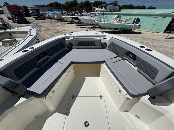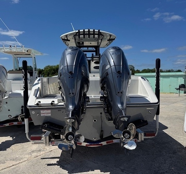 Hull Color (Haze Grey Solid Hull) upgradeCushions (Platinum & Storm) upgradeYamaha Twin 200XSA (Grey) 400HPHelm Master, EX DES Twin Engine W AP/JOY/ISO ChargerDigital Electric SteeringGEM Stainless SteelSeakeeper RideSeakeeper Ride IndicatorHelm Seat Premium with Tackle Center and Cooler with SlideBow Cushion PackageBow Cushion Pkg Cool TouchFaux Teak Decking Kit, Grey and BlackHardtop with Integrated Frame and Glass Windshield, Matte Black Powder CoatingSun Shade, BowElectric Head with Macerator (with Port Window)Stereo, JL Audio with Amp and Speakers, 4 BlackSpeakers, JL Audio for Hard Top, 4 BlackBoarding LadderCockpit Toe RailDeep Drop Set-Up (Reinforced Gunnel Boards and Electric Reel Outlets)Rod Rack for Leaning PostKingfish Rod Holders (1 Port, 1 Stbd), Hard TopVHF 215 Radio-Hard-Top LocationGarmin Dual Gpsmap 1243xsv with Acrylic Dash, GT56UHD & GT12M TransducersWireless Phone ChargerFish Box Pump-Out with Macerator (2)Windlass Deluxe - Chain, Rope, S/S Anchor and Stem Chafing GuardWireless Remote for Windlass SystemLine Upgrade for Windlass System - 300FtTrolling Motor PrepBattery Charger (4-Bank with Inlet)Under Water Lights, Blue (Set of 2)No Batteries "VarisYamaha Twin 150XSA (Grey)Helm Master, EX DES Twin Engine W/ISO ChargerGEM Stainless SteelTrim TabsTrim Tab IndicatorYamaha Fuel/Water Separator & Control CablesWaterproof Deutsch Electrical ConnectorsHull 2-Tone Standard WhiteHull Color Hull 2-Tone Pure WhiteHelm Seat Premium W Tackle Center & Cooler W/SlideCushions Cushion Color WhiteBow Cushion PkgHideaway Aft Bench SeatingCockpit BolstersConsole Seating w/ Backrest & CushionFaux Teak Decking Kit, Grey & BlackHardtop with Integrated Frame and Glass Windshield, White Powder CoatingElectric Head with Macerator (with Port Window)Stereo, JL Audio with Amp & Speakers, 4 WhiteSpeakers, JL Audio for Hard Top, 4 WhiteFresh Water Washdown SystemRaw Water WashdownBoarding Ladder (Covered)Forward Console Access DoorFresh Water at TransomFresh Water Sink in ConsoleBow Rail (Fully Recessed)Head Comfort Appointments (Towel Bar, Toilet Paper Holder, Mirror)Side Dive, Tuna and Dockside Boardingdoor (Inward Opening)USB Outlets and Cuphol
