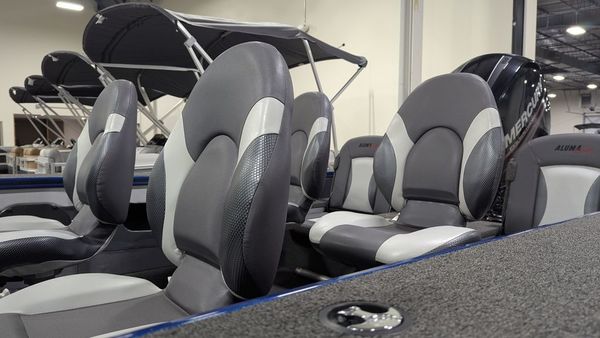 This boat is in like-new condition. Only 97 hours on the motor. Save yourself some money on a really clean, pre-owned boat. This one has bow cushions, rear jump seats, lots of storage, a full-width windshield, and an Infinity stereo system. Includes MinnKota Terrova trolling motor, Humminbird Helix 5, and Helix 7. Don't miss out on this one! Just arrived. More photos to come.