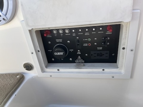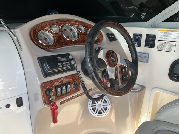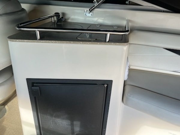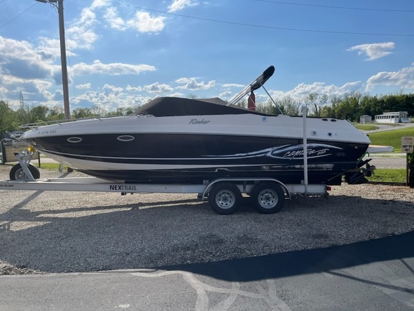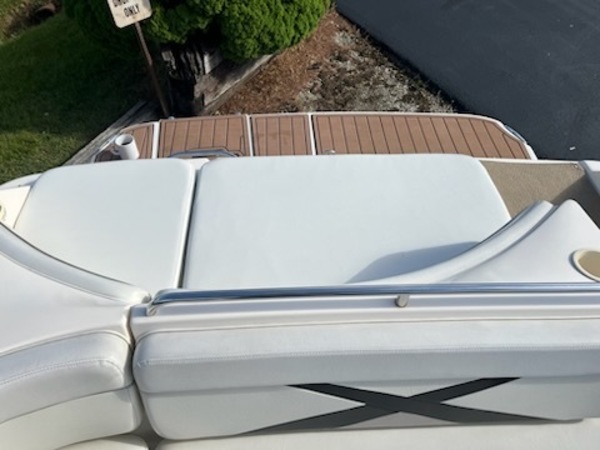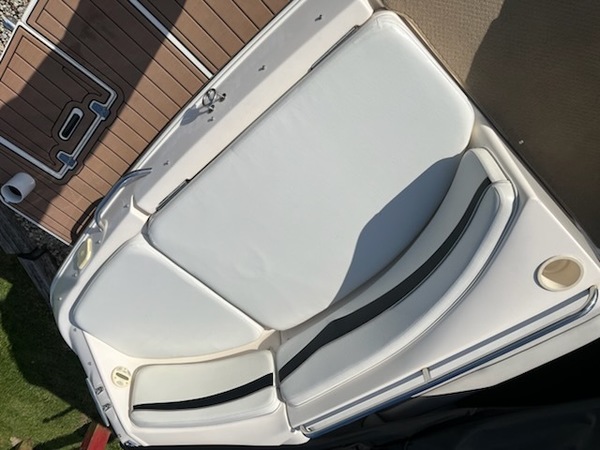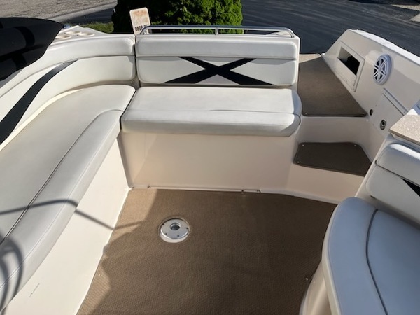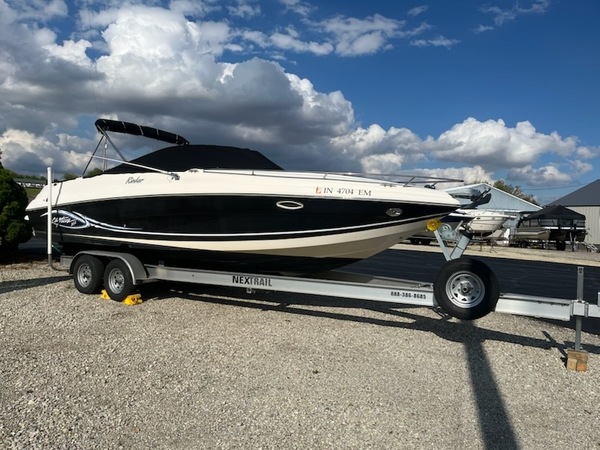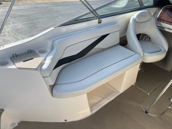 One of Rinkers' finest models the 282 Captiva. Roomy cockpit and smooth running hull are the highlights. Very nice condition all around. The interior in nearly perfect, snap in carpet, windlass anchor, extended swim platform with marine mat, cabin for overnighting or escaping the weather, enclosed pump out head. Mercruiser 496 Bravo 3. New Nextrail tandem axle aluminum trailer.